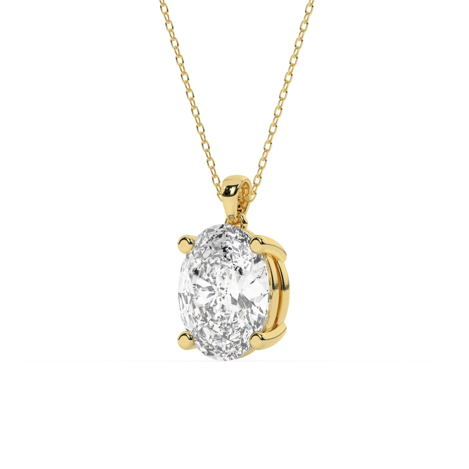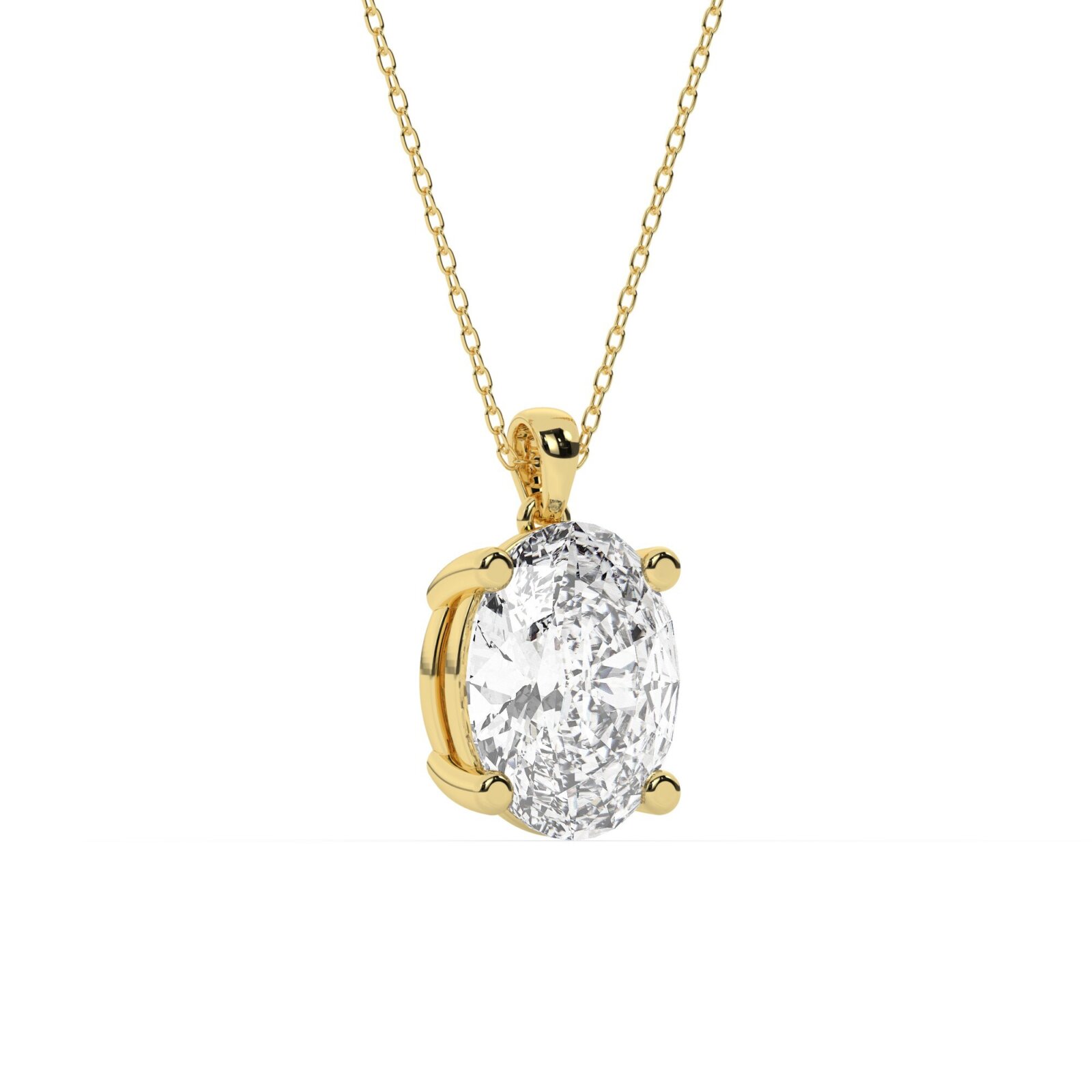 תליון סוליטר עם מתלה לשרשרת דגם 50082 זהב צהוב 14 קראט במרכז יהלום טבעי במשקל כולל של 5 קראט בחיתוך אובל עם תעודה גמולוגית אמריקאית GIA