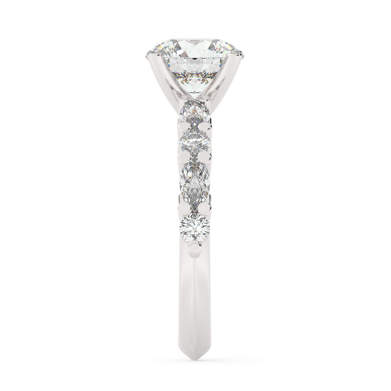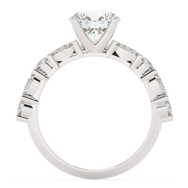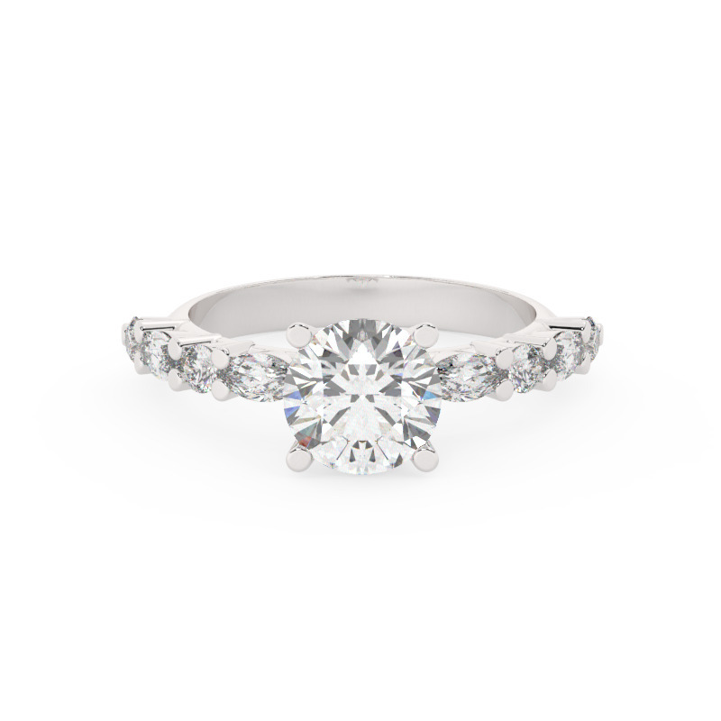 הטבעת מציעה אלמנטים נוספים, ארבע אבני זירקוניה מרקיזה בצדדיה במשקל כולל של 0.40 קארט, וחמש אבנים עגולות נוספות בצדדים במשקל כולל של 0.20 קארט. כל אחת מהאבנים הצדדיות, גם הן בפועל בצבע D וברמת בהירות VVS1, נבחרות בקפידה ליצירת חוויית יוקרה מושלמת.