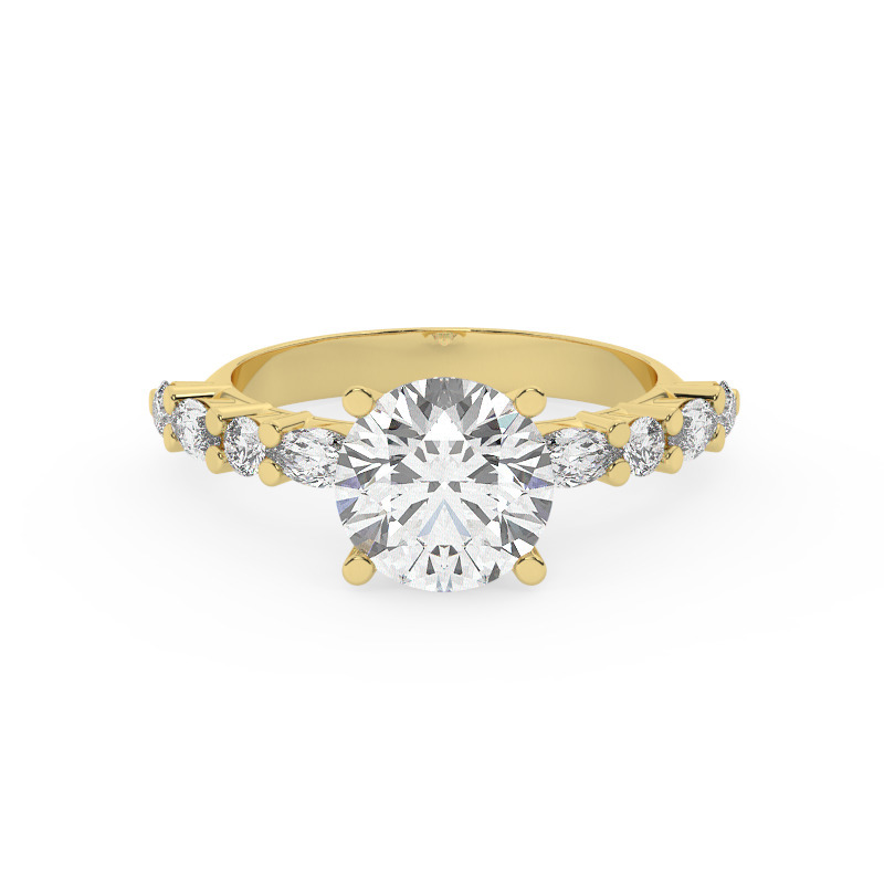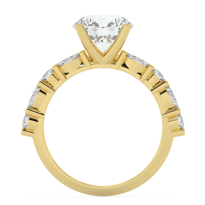 טבעת אירוסין סוליטר ויהלומים בצדדים דגם 50068 זהב צהוב 14 קראט במרכז זירקוניה 5 קראט עגול בחיתוך קראט מסביב ובצדדים זירקונים