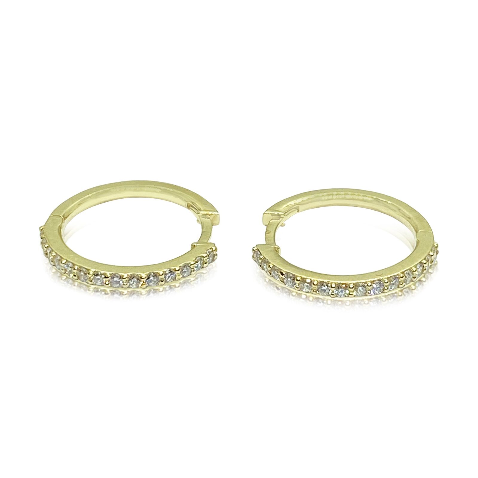 עגילים חישוק קטנים מאד זהב צהוב משובצים יהלומים טבעיים 0.11 קראט קוטר 10.70 ממ
