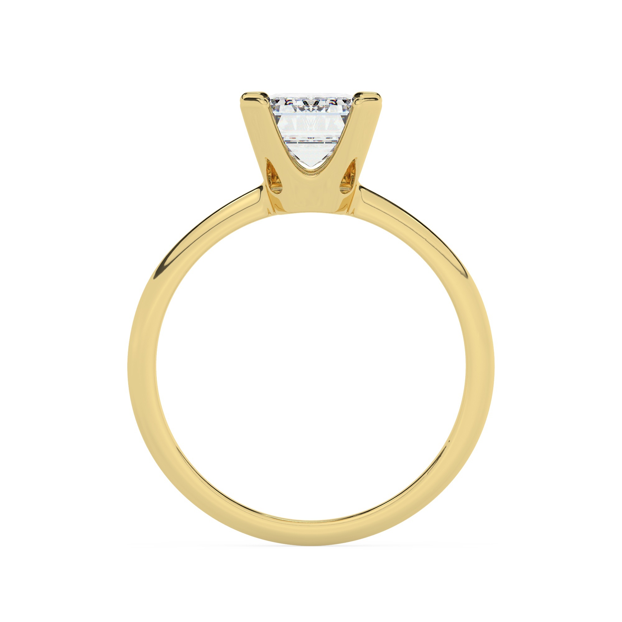 טבעת אירוסין סוליטר דגם 50023 כסף מצופה זהב צהוב במרכז יהלום מעבדה במשקל כולל של 0.75 קראט בחיתוך אמרלד עם תעודה גמולוגית