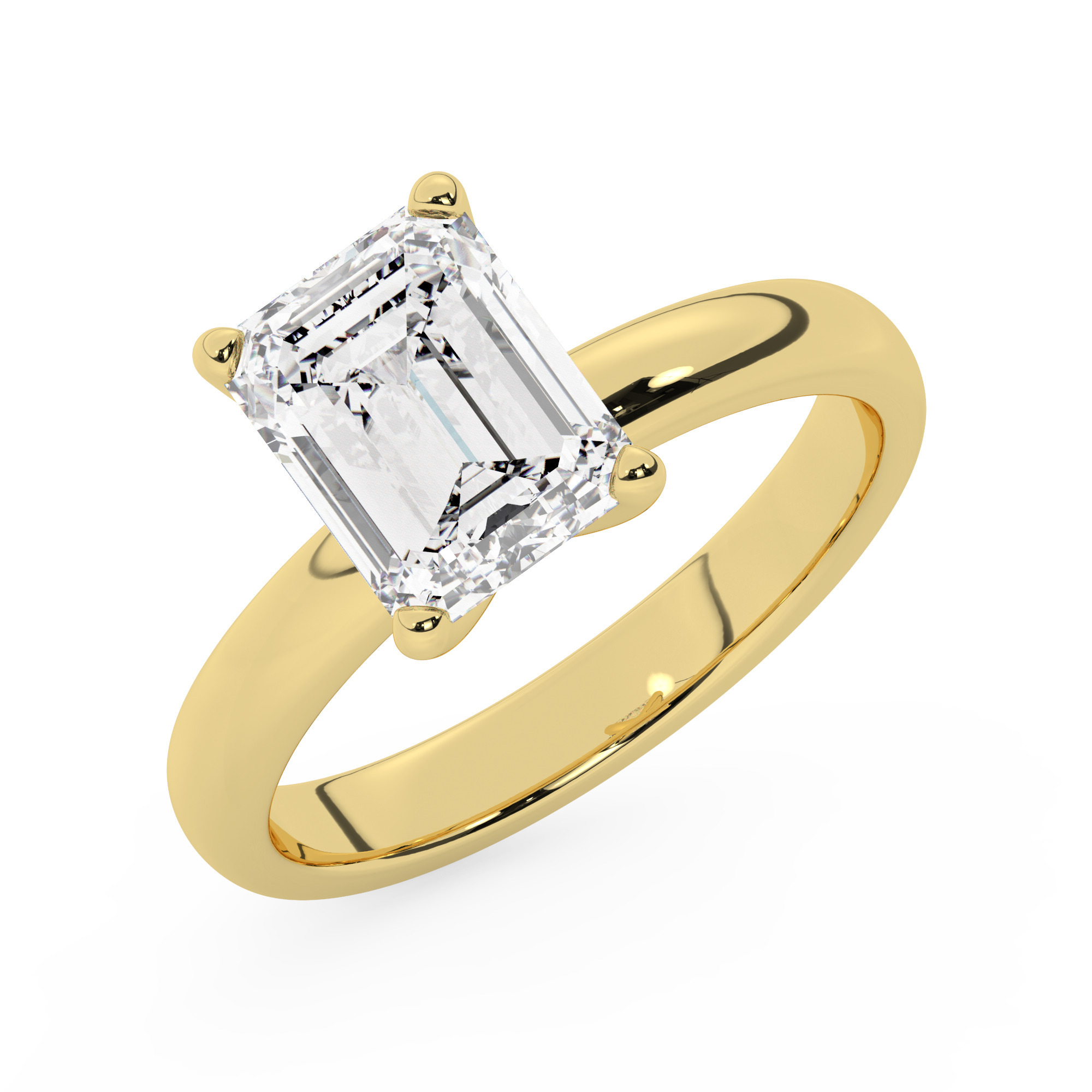טבעת אירוסין סוליטר דגם 50047 כסף מצופה זהב צהוב במרכז יהלום מעבדה במשקל כולל של 1 קראט בחיתוך אמרלד עם תעודה גמולוגית אירופאית IGI