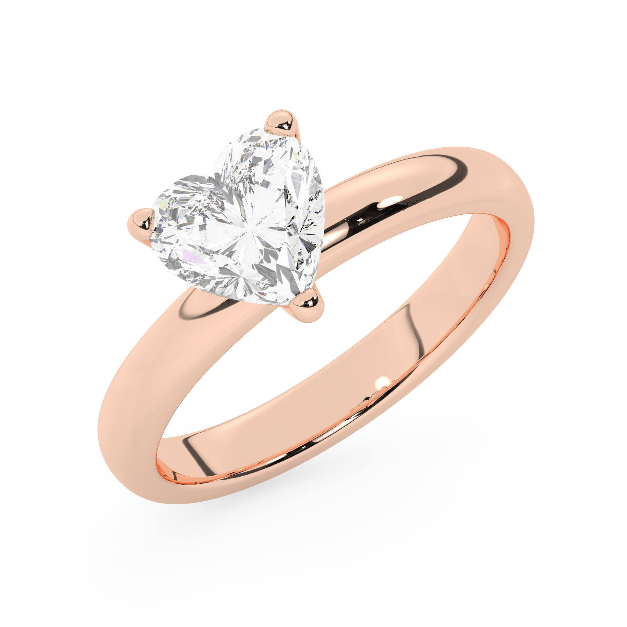 טבעת אירוסין סוליטר דגם 50047 כסף מצופה זהב אדום רוזגולד במרכז יהלום מעבדה במשקל כולל של 0.50 קראט בחיתוך לב עם תעודה גמולוגית