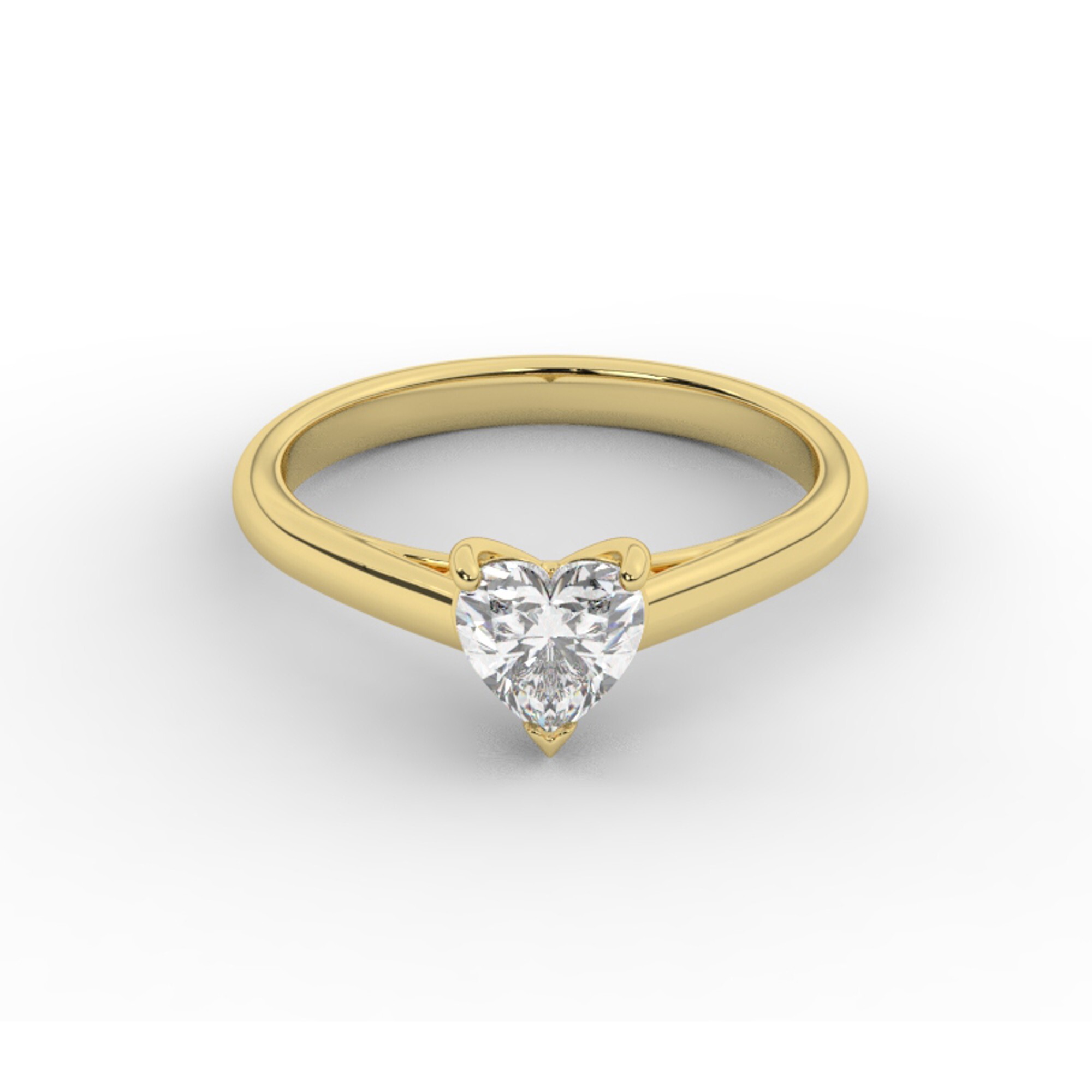 טבעת אירוסין סוליטר דגם 50029 זהב צהוב 14 קראט במרכז יהלום מעבדה במשקל כולל של 0.75 קראט בחיתוך לב עם תעודה גמולוגית