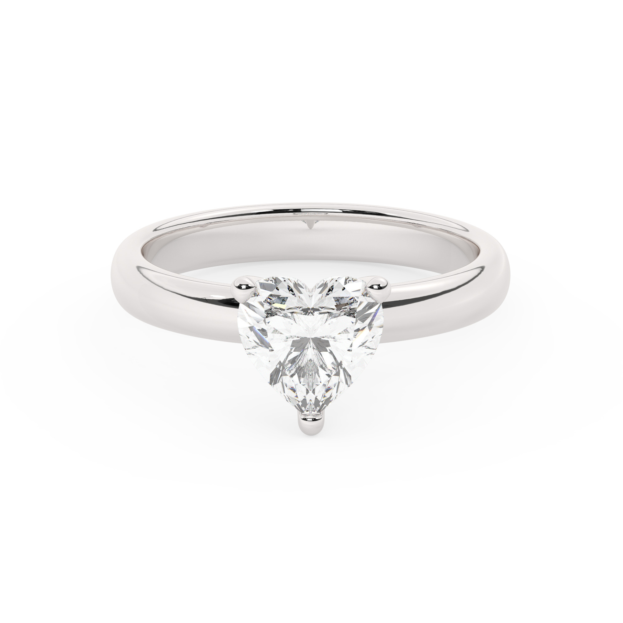 טבעת אירוסין סוליטר דגם 50047 כסף מצופה זהב לבן במרכז יהלום מעבדה במשקל כולל של 1 קראט בחיתוך לב עם תעודה גמולוגית אירופאית IGI