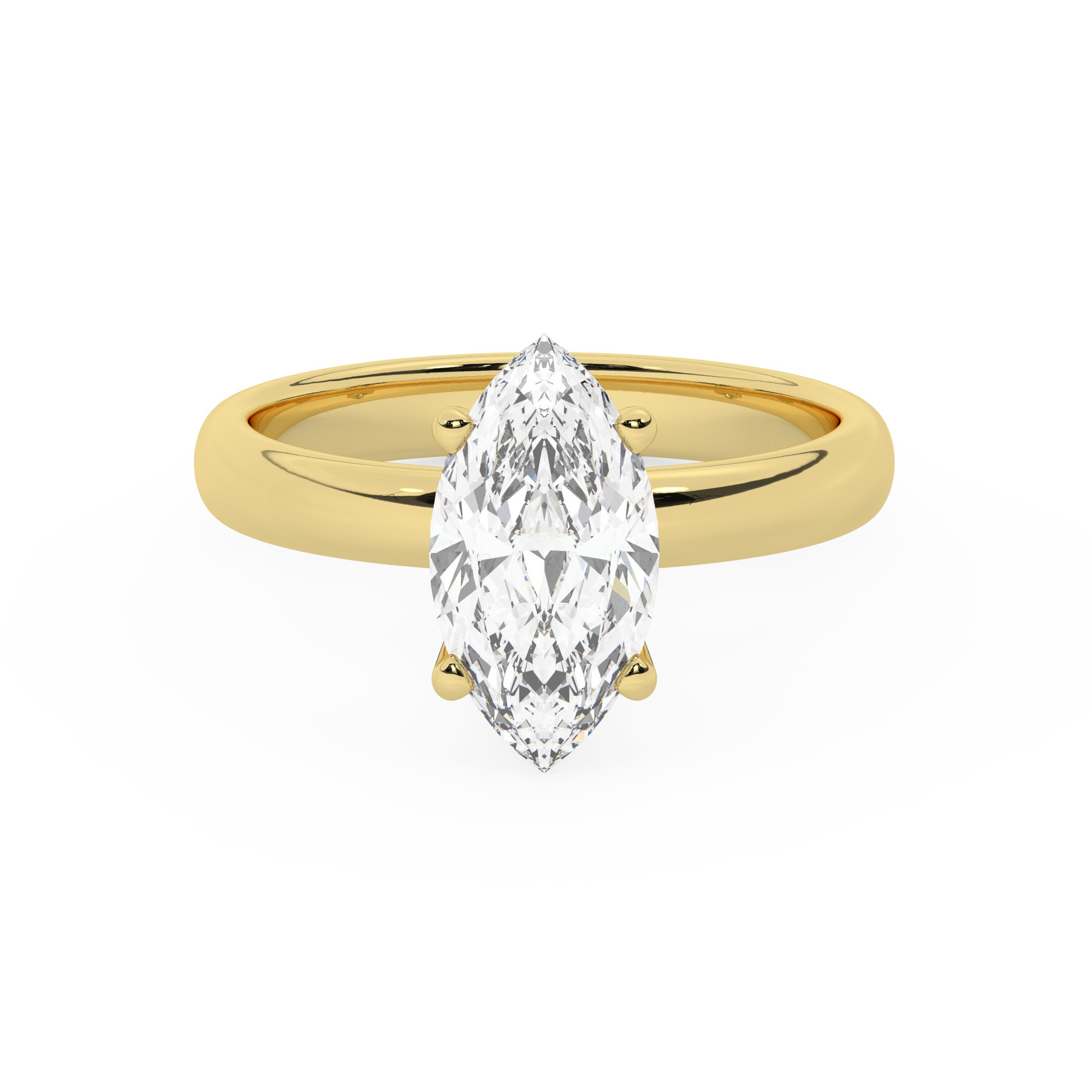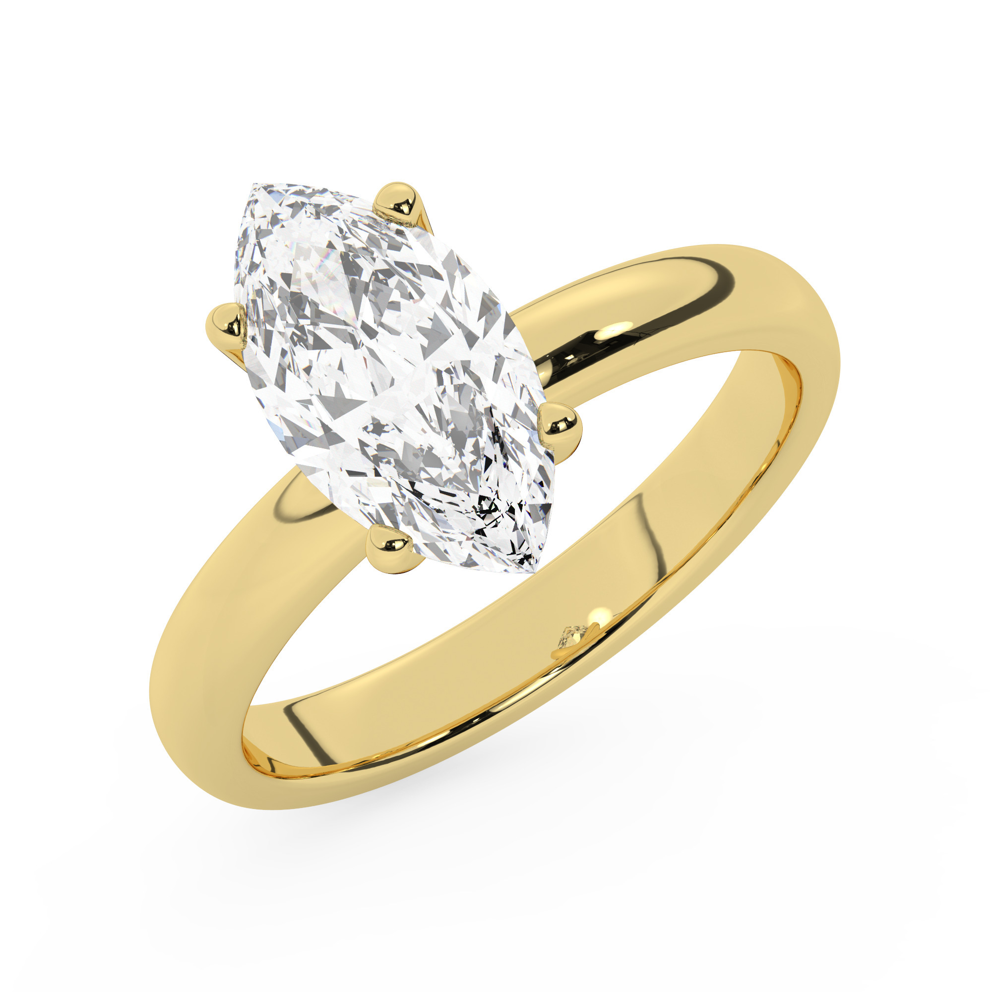 טבעת אירוסין סוליטר דגם 50047 כסף מצופה זהב צהוב במרכז יהלום מעבדה במשקל כולל של 1 קראט בחיתוך מרקיזה עם תעודה גמולוגית אירופאית IGI