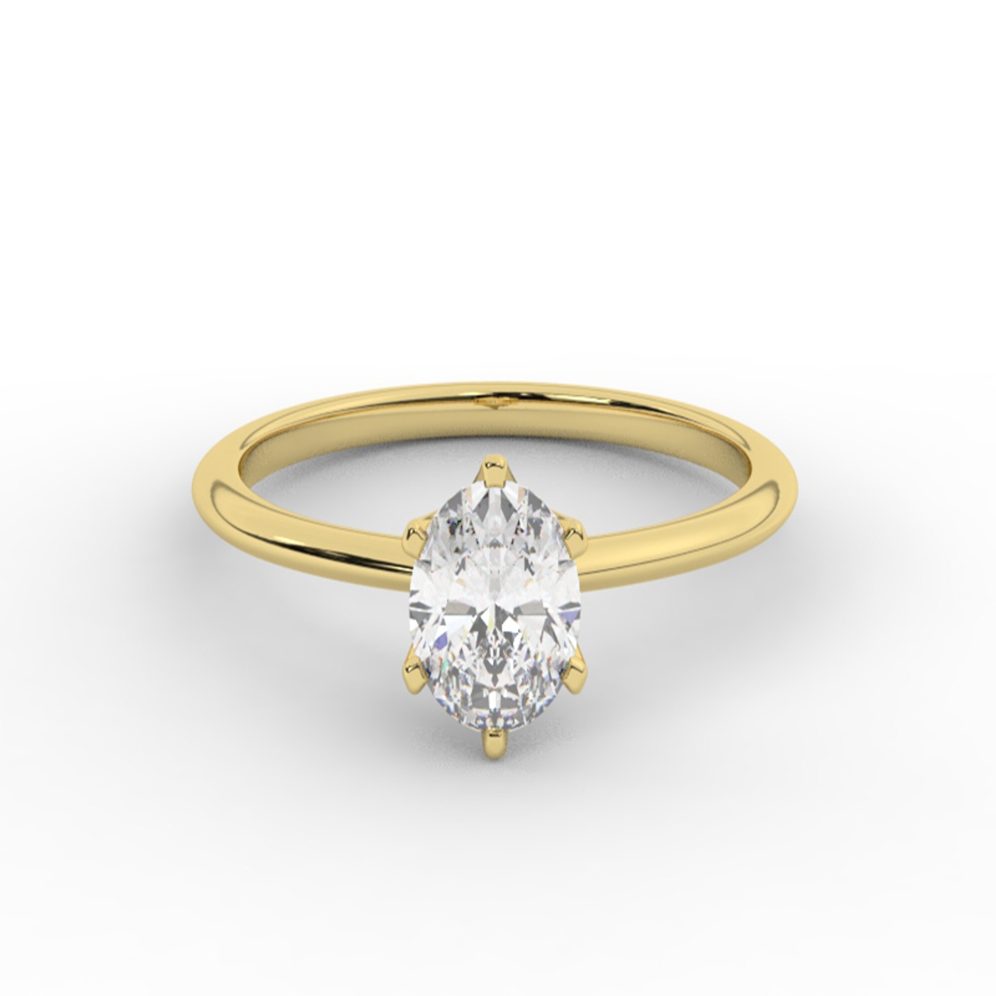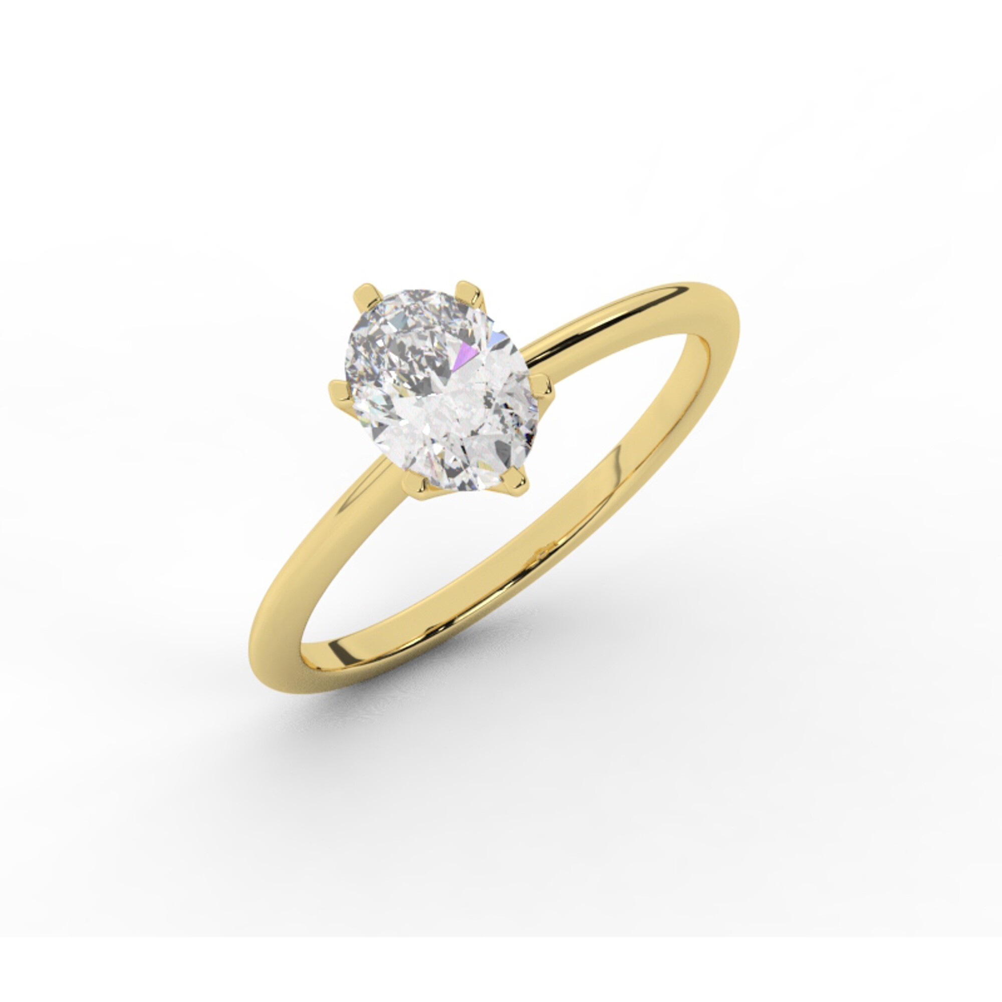 טבעת אירוסין סוליטר דגם 50023 כסף מצופה זהב צהוב במרכז יהלום מעבדה במשקל כולל של 0.75 קראט בחיתוך אובל עם תעודה גמולוגית