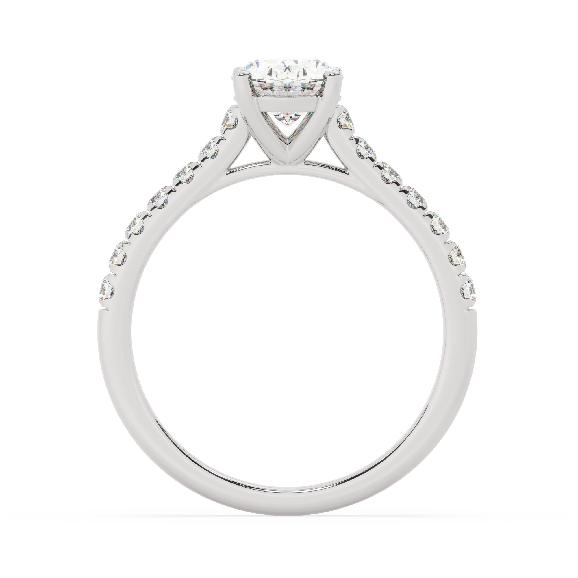 לאורך כתר הטבעת נוכל למצוא 14 יהלומי מעבדה עגולים, ששוכנים בצדדים והופכים את הטבעת למרשימה אף יותר. כל יהלום צד במשקל 0.28 קראט, גם הוא בצבע E ובבהירות VS1, נבחר בקפידה על מנת להקנות לעונד את התחושה כי הוא מסייע ליהלום המרכזי לזרוח באופן מענג. המתכות המוקדשות לתכשיט זה הן כסף מצופה זהב לבן, אשר מוסיפות אלמנט של אלגנטיות ועשירות.