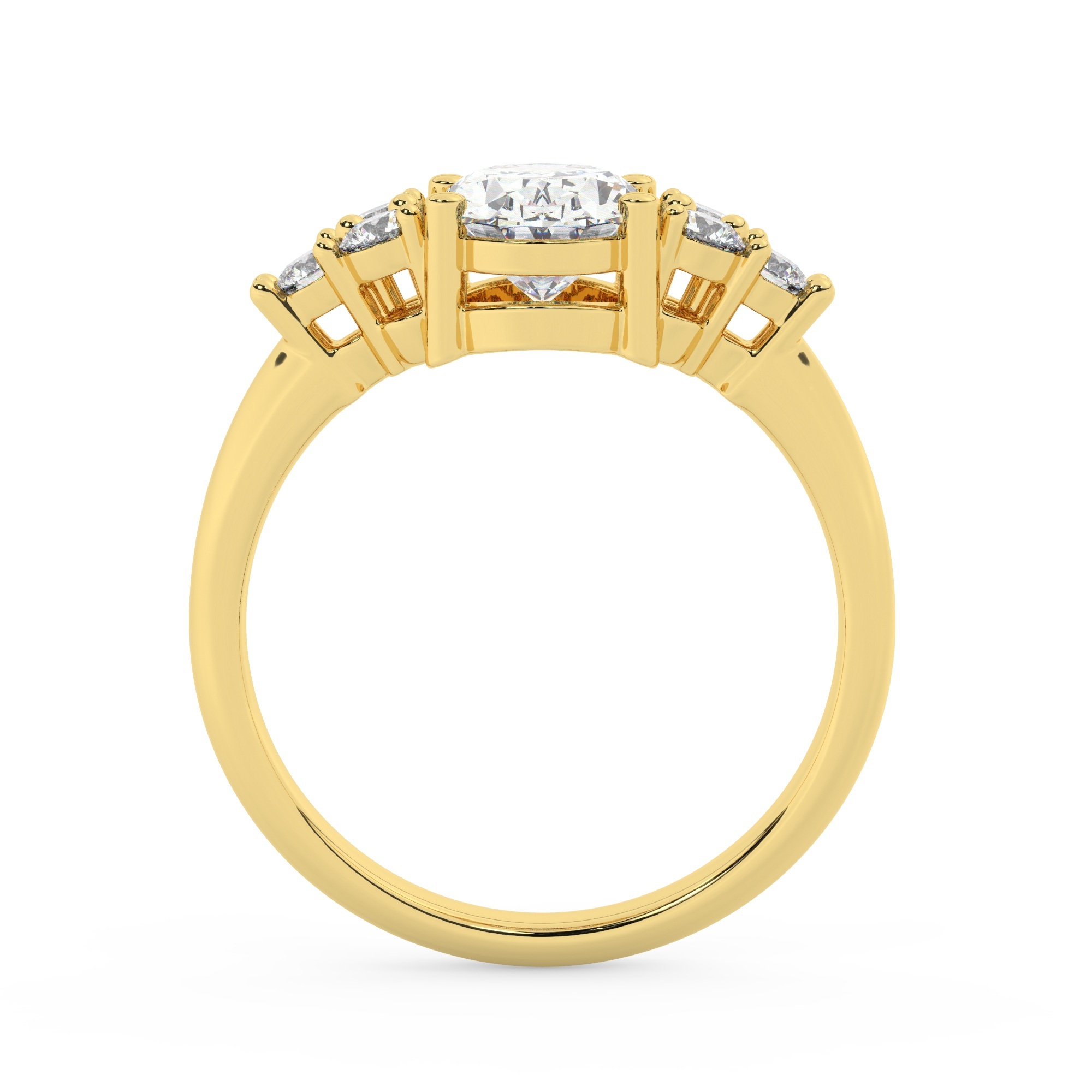 50% הנחהטבעת אירוסין סוליטר ויהלומים בצדדים דגם 50068 כסף מצופה זהב צהוב במרכז זירקוניה 1.50 קראט בחיתוך אובל מסביב ובצדדים זירקונים