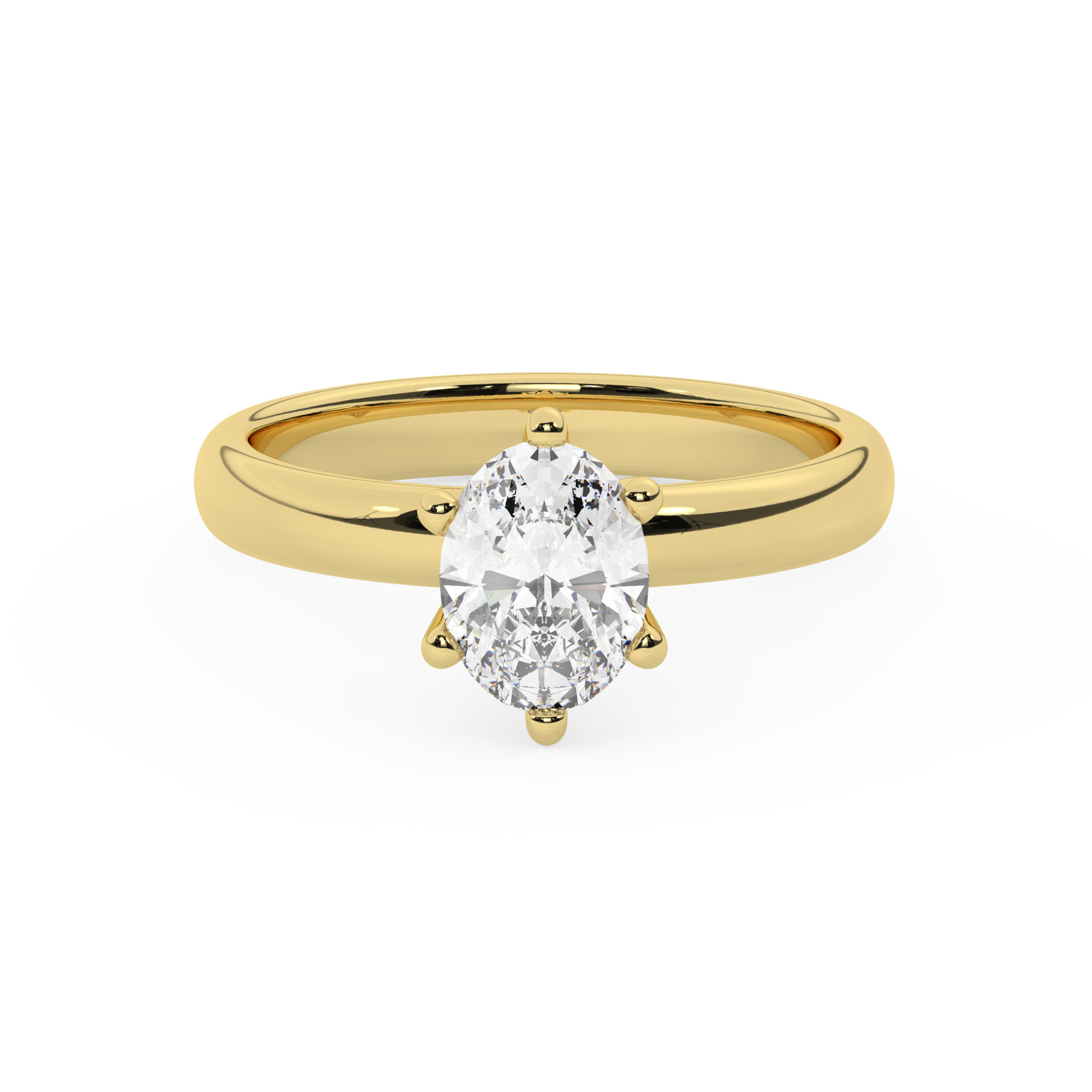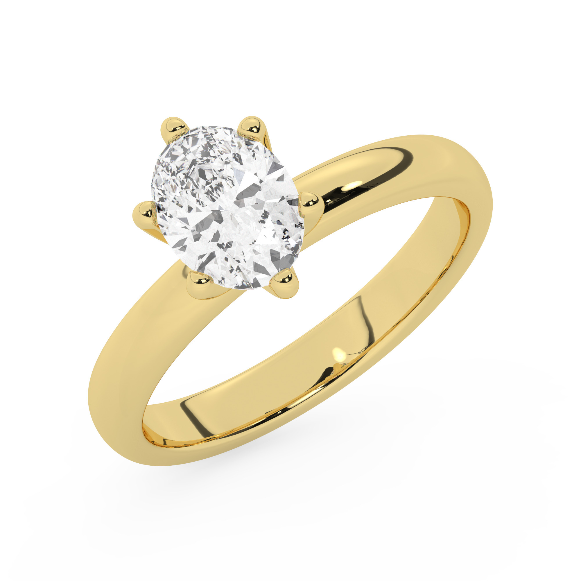 טבעת אירוסין סוליטר דגם 50047 כסף מצופה זהב צהוב במרכז יהלום מעבדה במשקל כולל של 1 קראט בחיתוך אובל עם תעודה גמולוגית אירופאית IGI