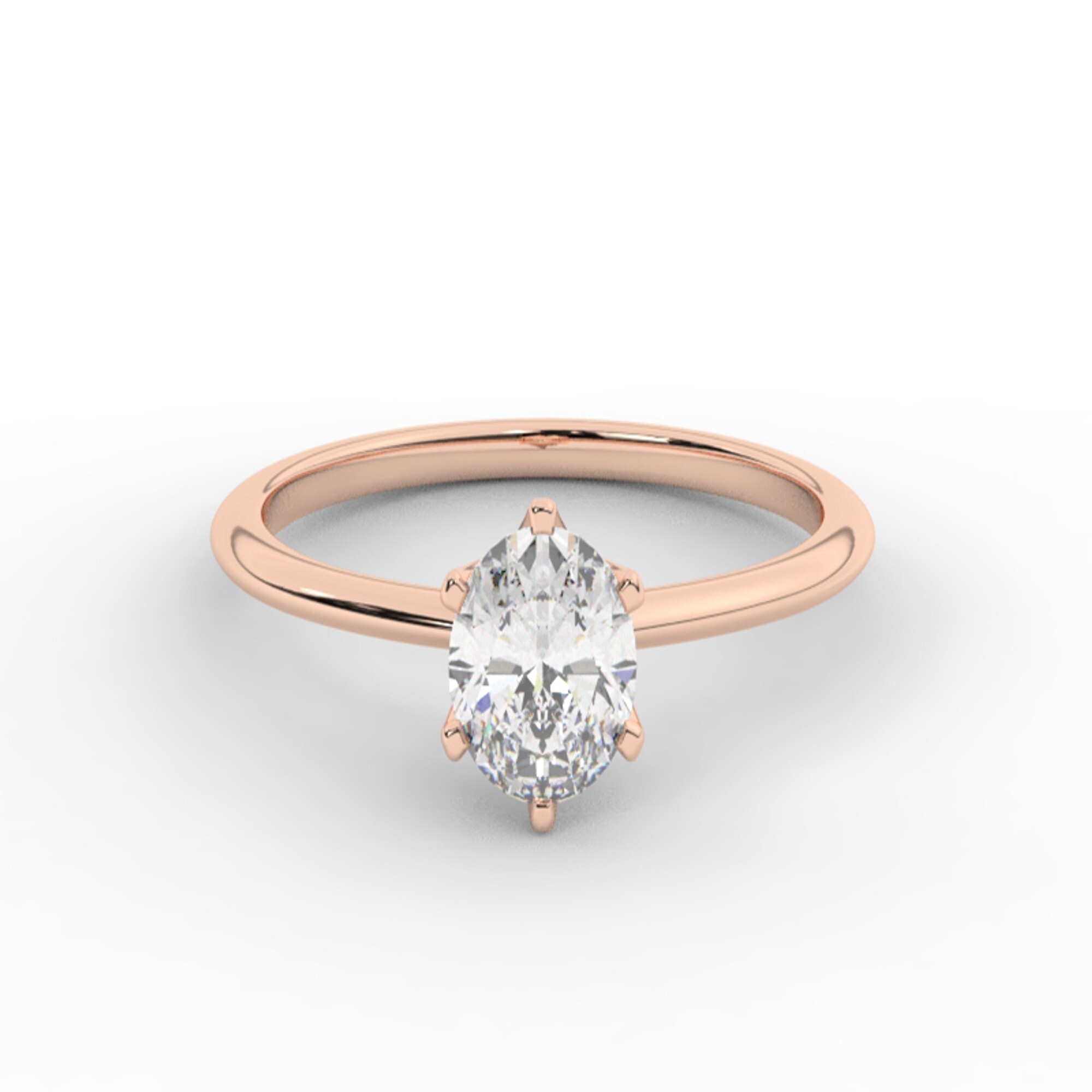 טבעת אירוסין סוליטר דגם 50023 כסף מצופה זהב אדום רוזגולד במרכז יהלום מעבדה במשקל כולל של 1.50 קראט בחיתוך אובל עם תעודה גמולוגית אירופאית IGI