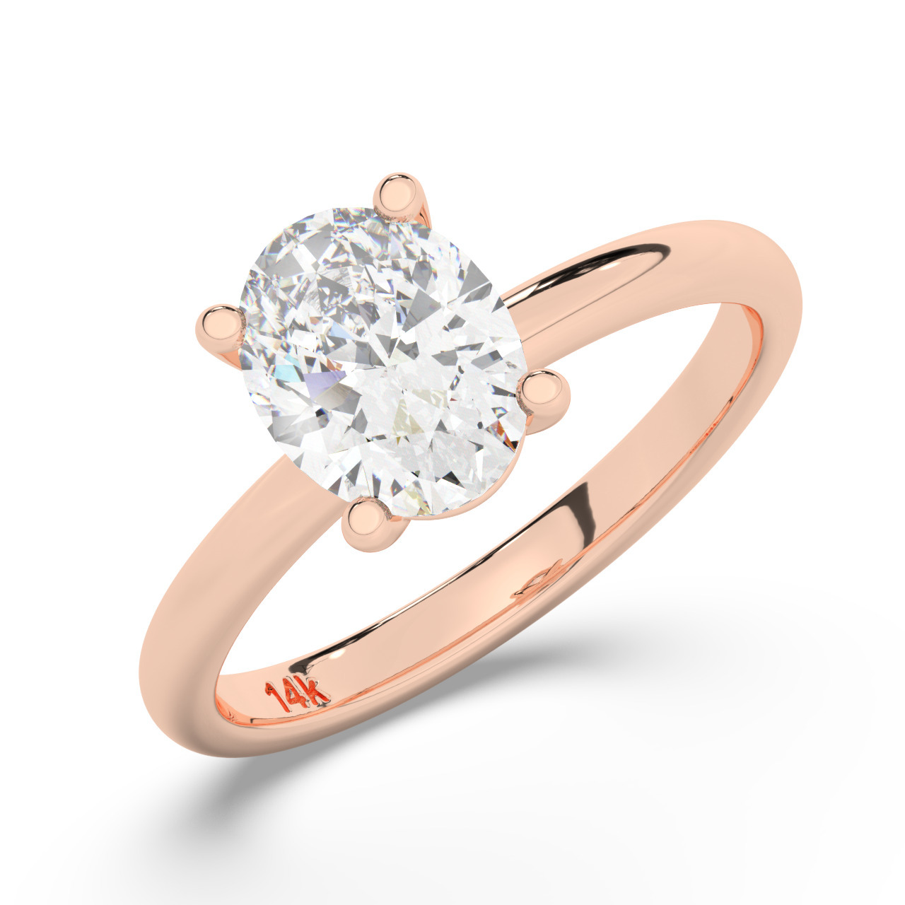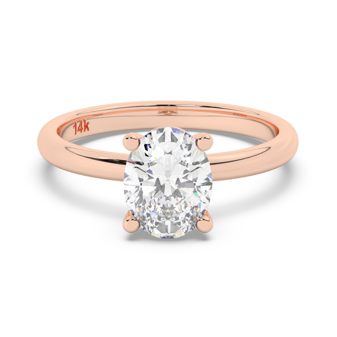 טבעת אירוסין סוליטר דגם 50016 כסף מצופה זהב אדום רוזגולד במרכז יהלום מעבדה במשקל כולל של 2 קראט בחיתוך אובל עם תעודה גמולוגית אירופאית IGI