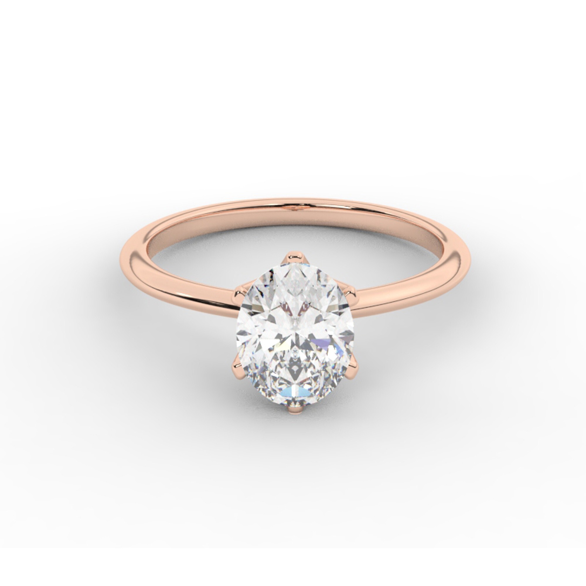 טבעת אירוסין סוליטר דגם 50023 כסף מצופה זהב אדום רוזגולד במרכז יהלום מעבדה במשקל כולל של 2 קראט בחיתוך אובל עם תעודה גמולוגית אירופאית IGI