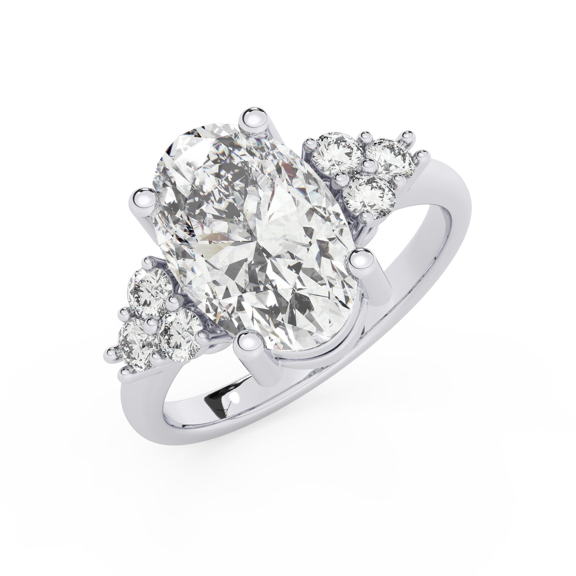 טבעת זו, בעלת אבן מרכזית בגודל 3 קרט במראה אובל, מתהדרת ביהלום מעבדה בצבע E ובהירות VS1, מה שמקנה לה תאורת קסם שעושה רושם בכל הזדמנות.