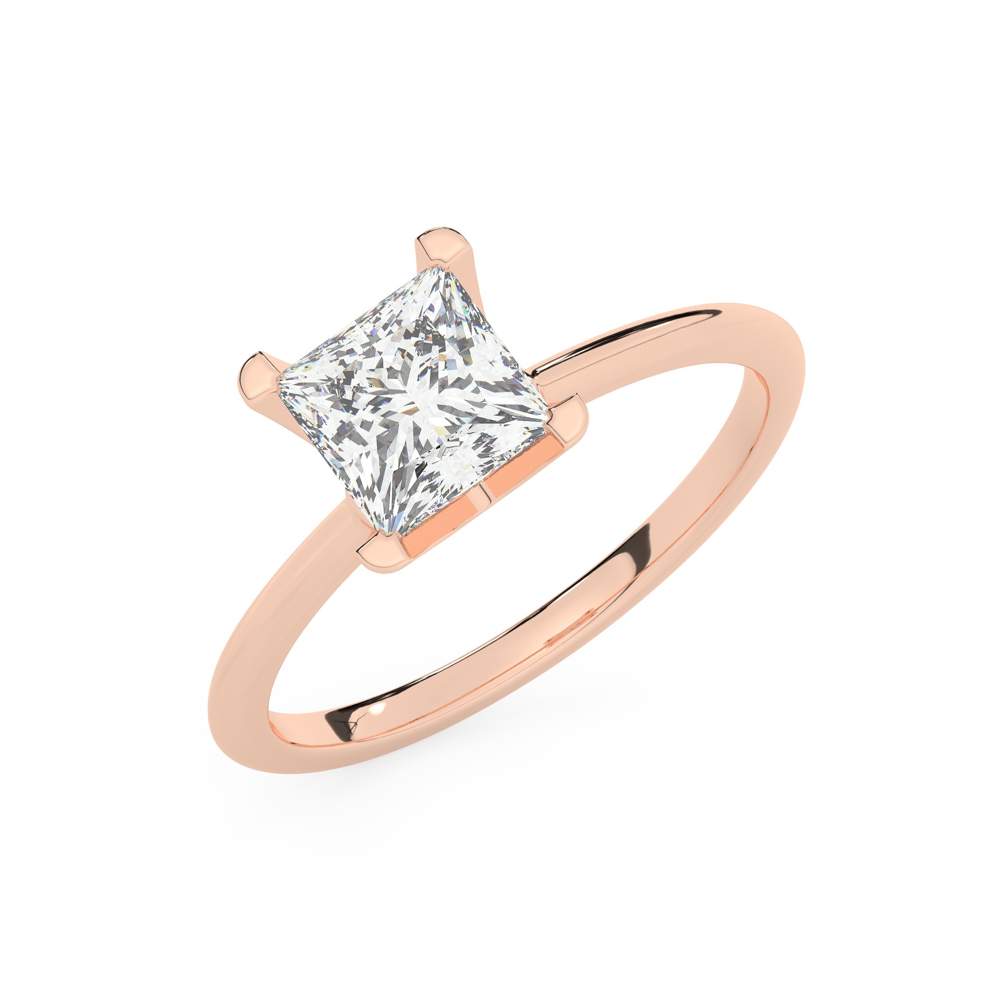 טבעת אירוסין סוליטר דגם 50023 כסף מצופה זהב אדום רוזגולד במרכז יהלום מעבדה במשקל כולל של 0.75 קראט בחיתוך פרינסס עם תעודה גמולוגית