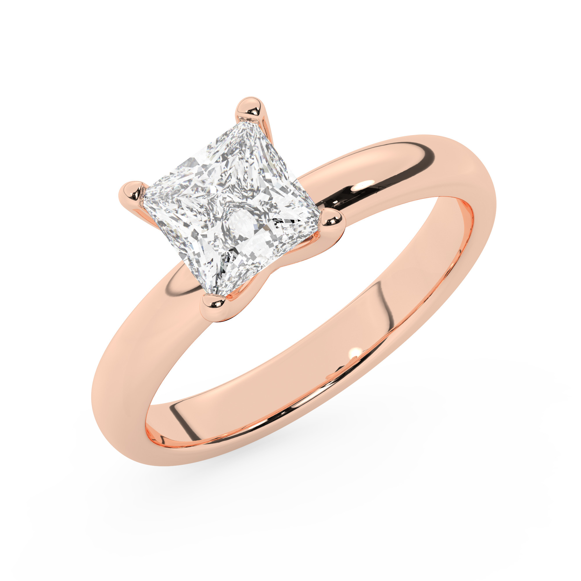 טבעת אירוסין סוליטר דגם 50047 כסף מצופה זהב אדום רוזגולד במרכז יהלום מעבדה במשקל כולל של 1 קראט בחיתוך פרינסס עם תעודה גמולוגית אירופאית IGI