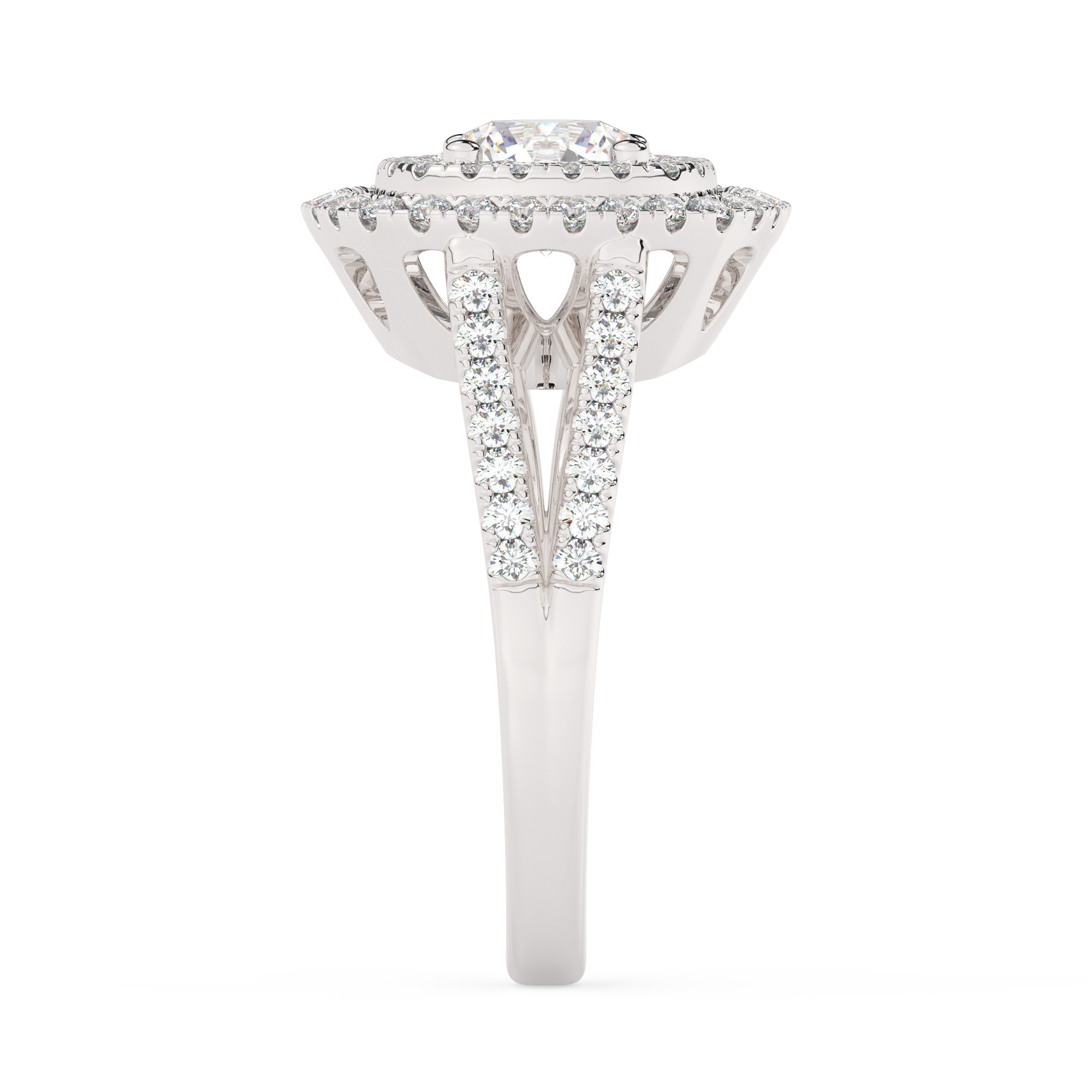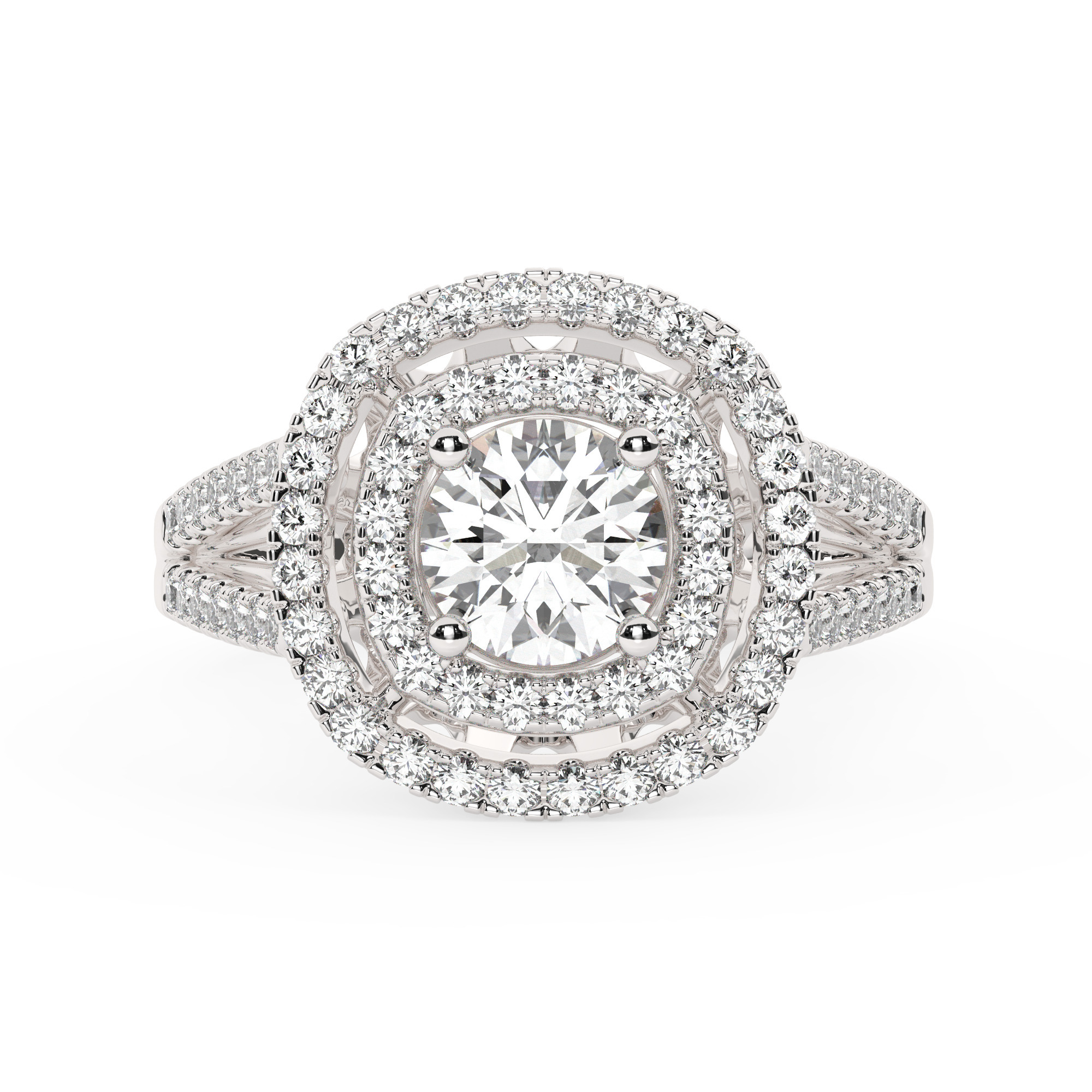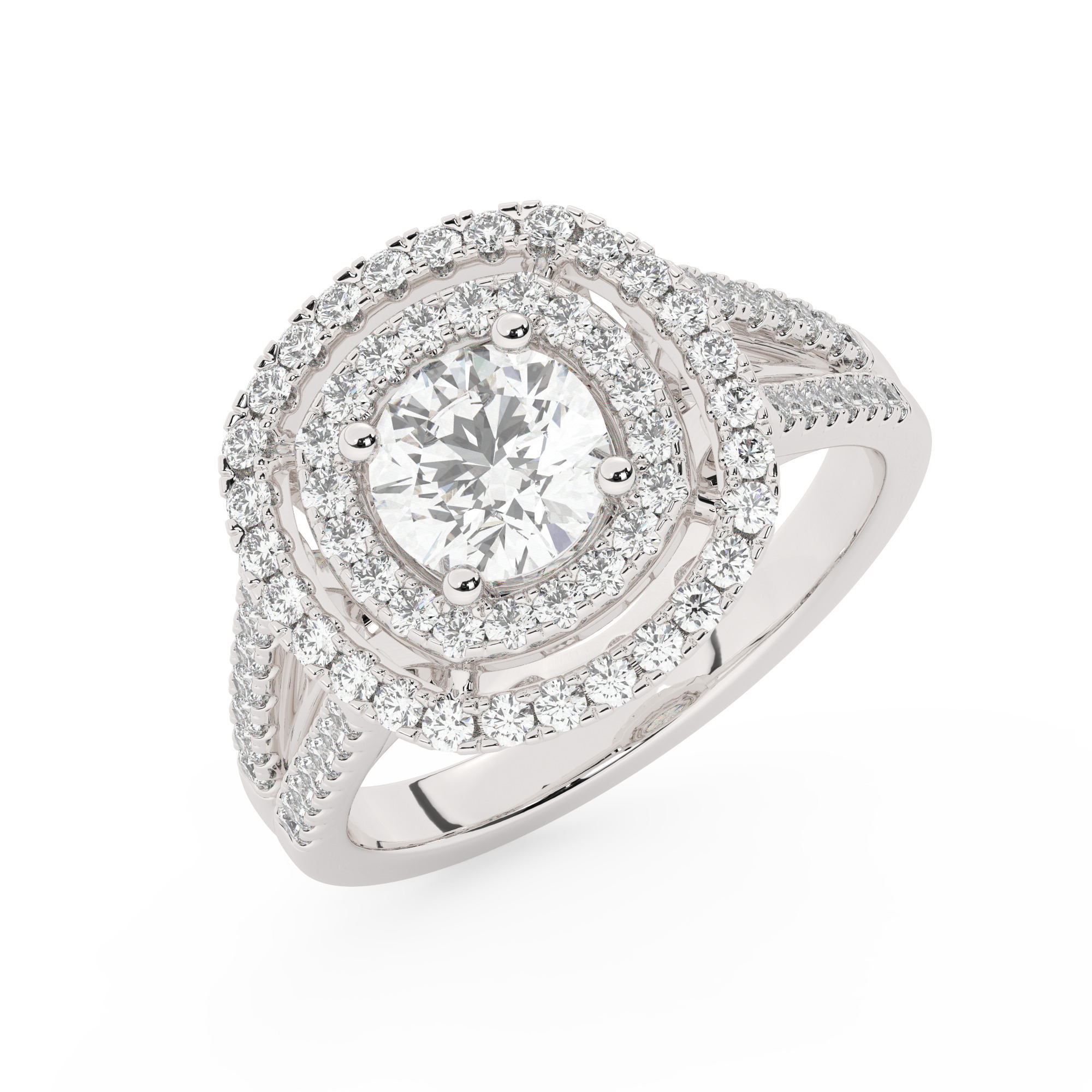 טבעת אירוסין היילו דגם 50025 כסף מצופה זהב לבן במרכז יהלום מעבדה 0.50 קראט בחיתוך עגול עם תעודה גמולוגית מסביב ובצדדים יהלומי מעבדה במשקל כולל של 0.62 קראט בחיתוך עגול