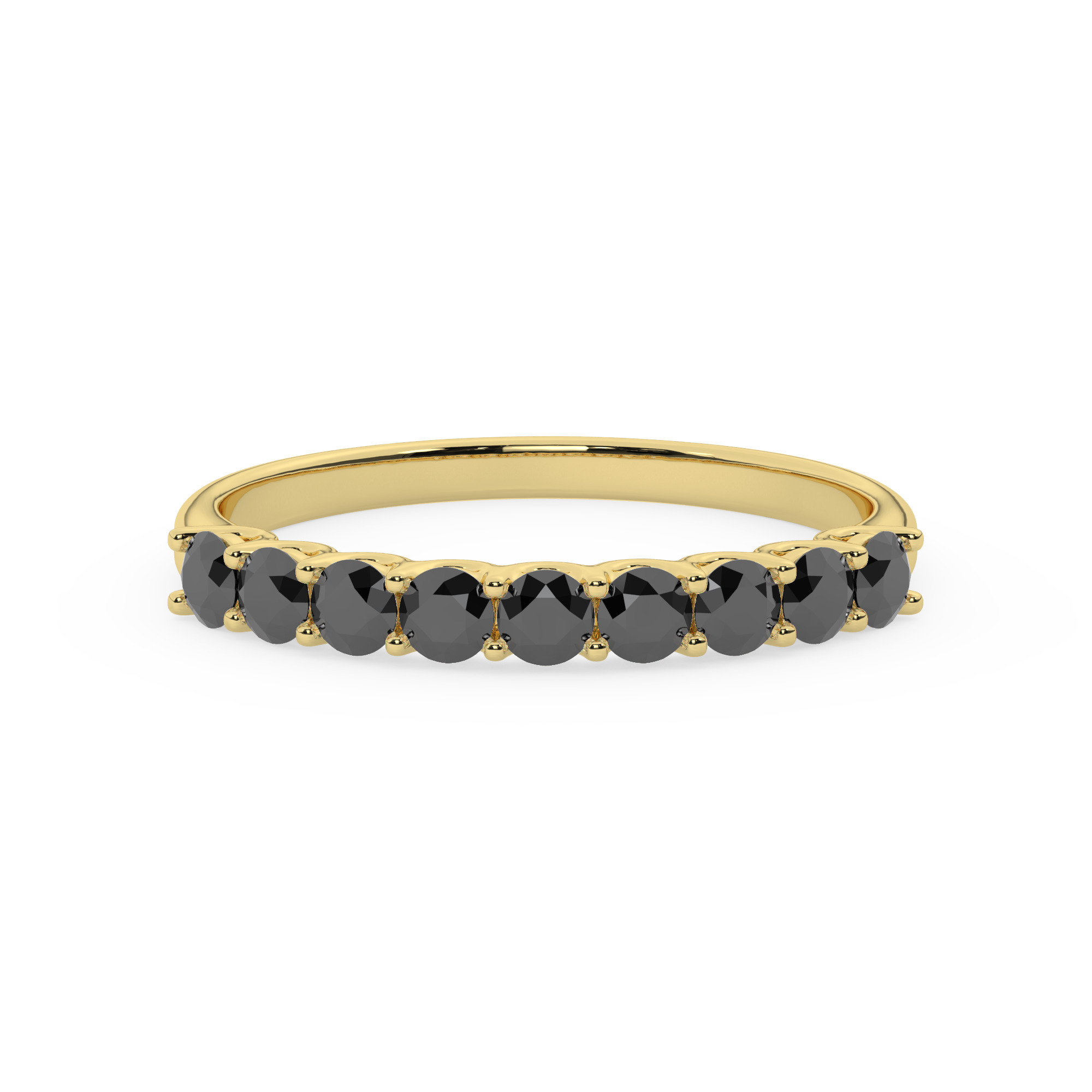 טבעת חצי איטרניטי שיבוץ יו קולקציה 2 דגם 50126B כסף מצופה זהב צהוב משובצת יהלומי מעבדה שחורים במשקל כולל של 0.50 קראט עם תעודה גמולוגית