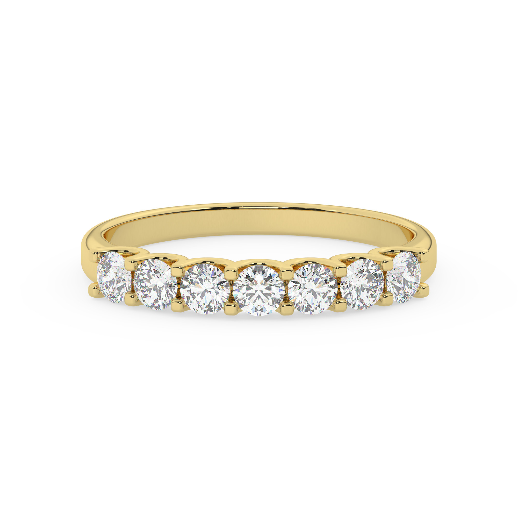 בטבעת משובצים 7 יהלומי מעבדה בחיתוך עגול במשקל כולל של 0.60 קרט עם תעודה גמולוגית.