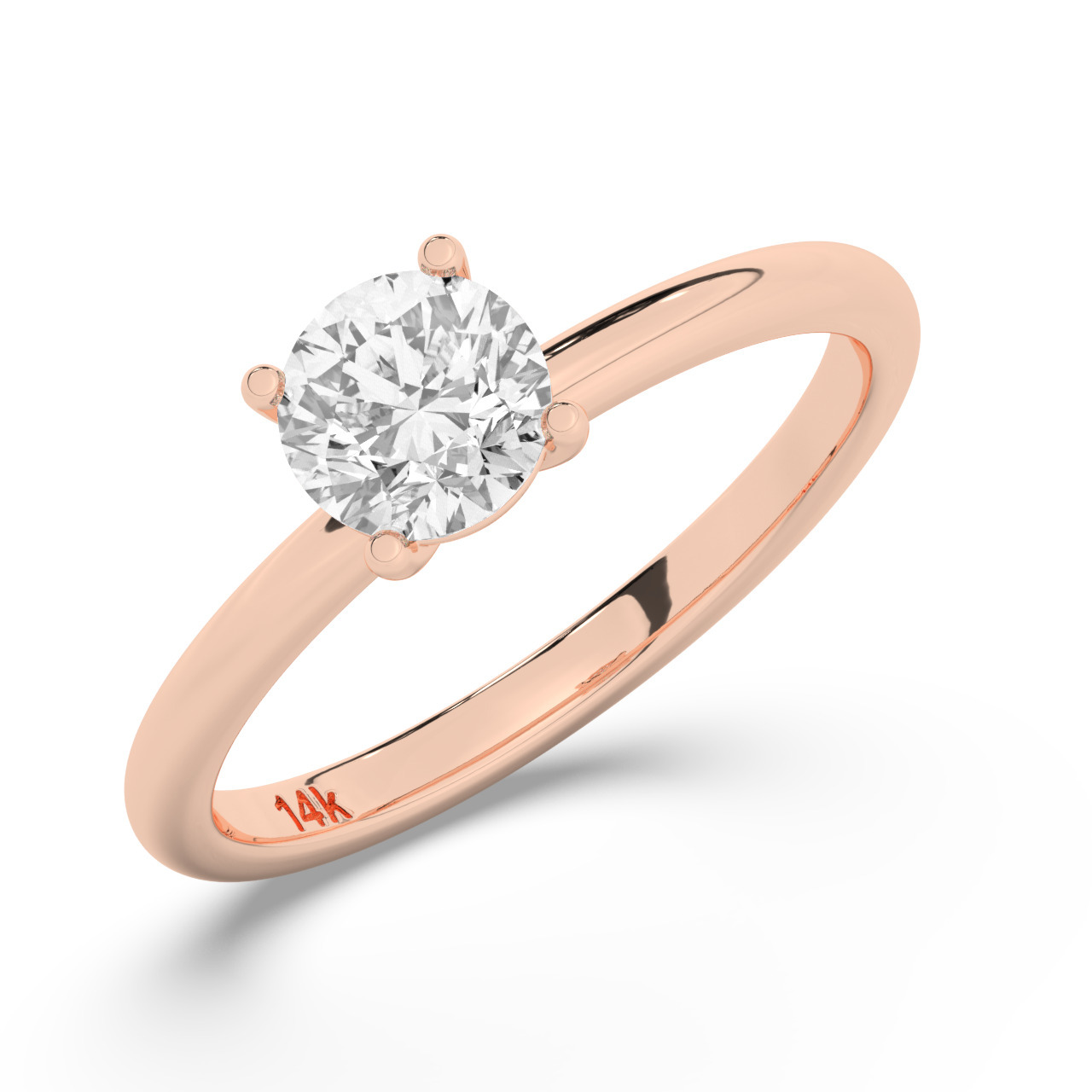 טבעת אירוסין סוליטר דגם 50016 כסף מצופה זהב אדום רוזגולד במרכז יהלום מעבדה במשקל כולל של 0.75 קראט בחיתוך עגול עם תעודה גמולוגית