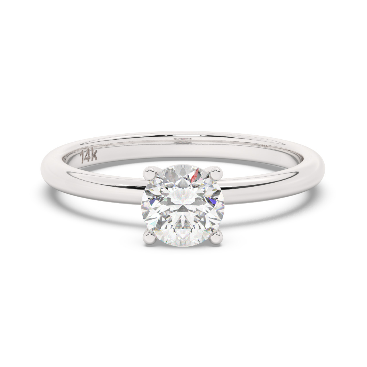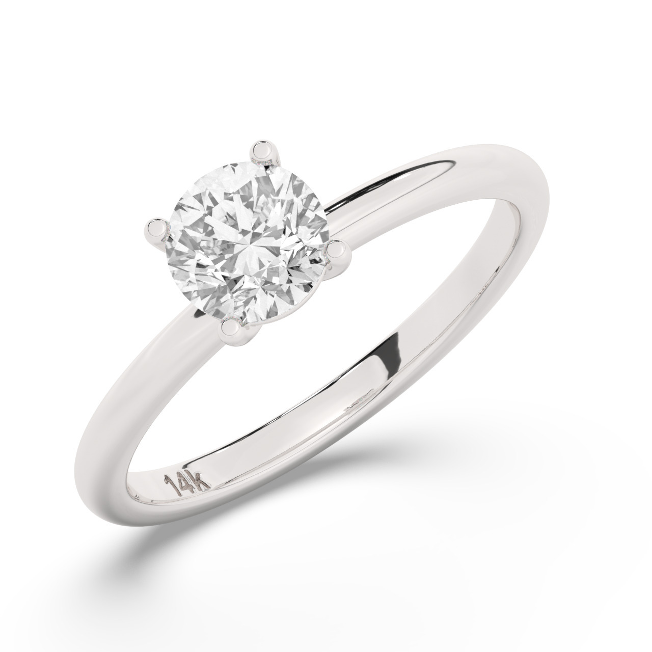 טבעת אירוסין סוליטר דגם 50016 כסף מצופה זהב לבן במרכז יהלום מעבדה במשקל כולל של 0.75 קראט בחיתוך עגול עם תעודה גמולוגית