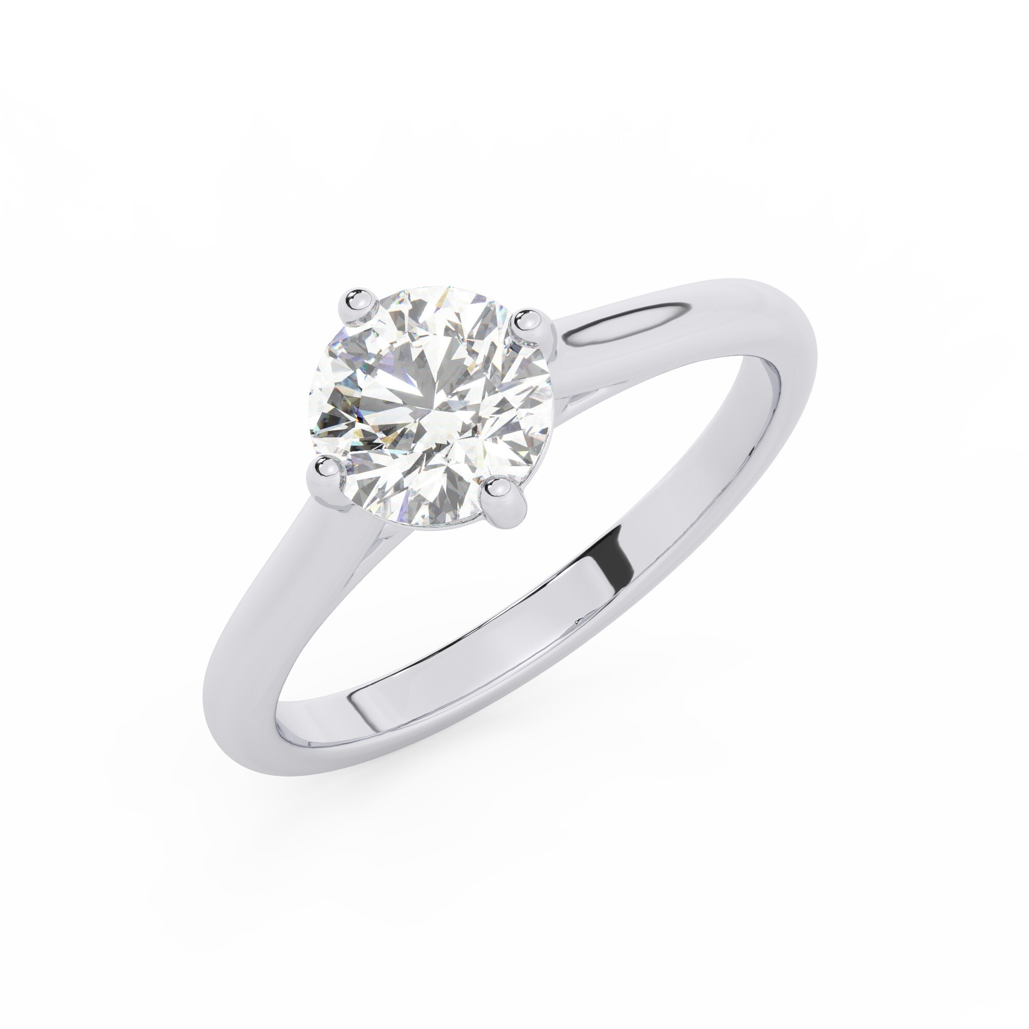 טבעת אירוסין סוליטר דגם 50029 כסף מצופה זהב לבן במרכז יהלום מעבדה במשקל כולל של 0.75 קראט בחיתוך עגול עם תעודה גמולוגית