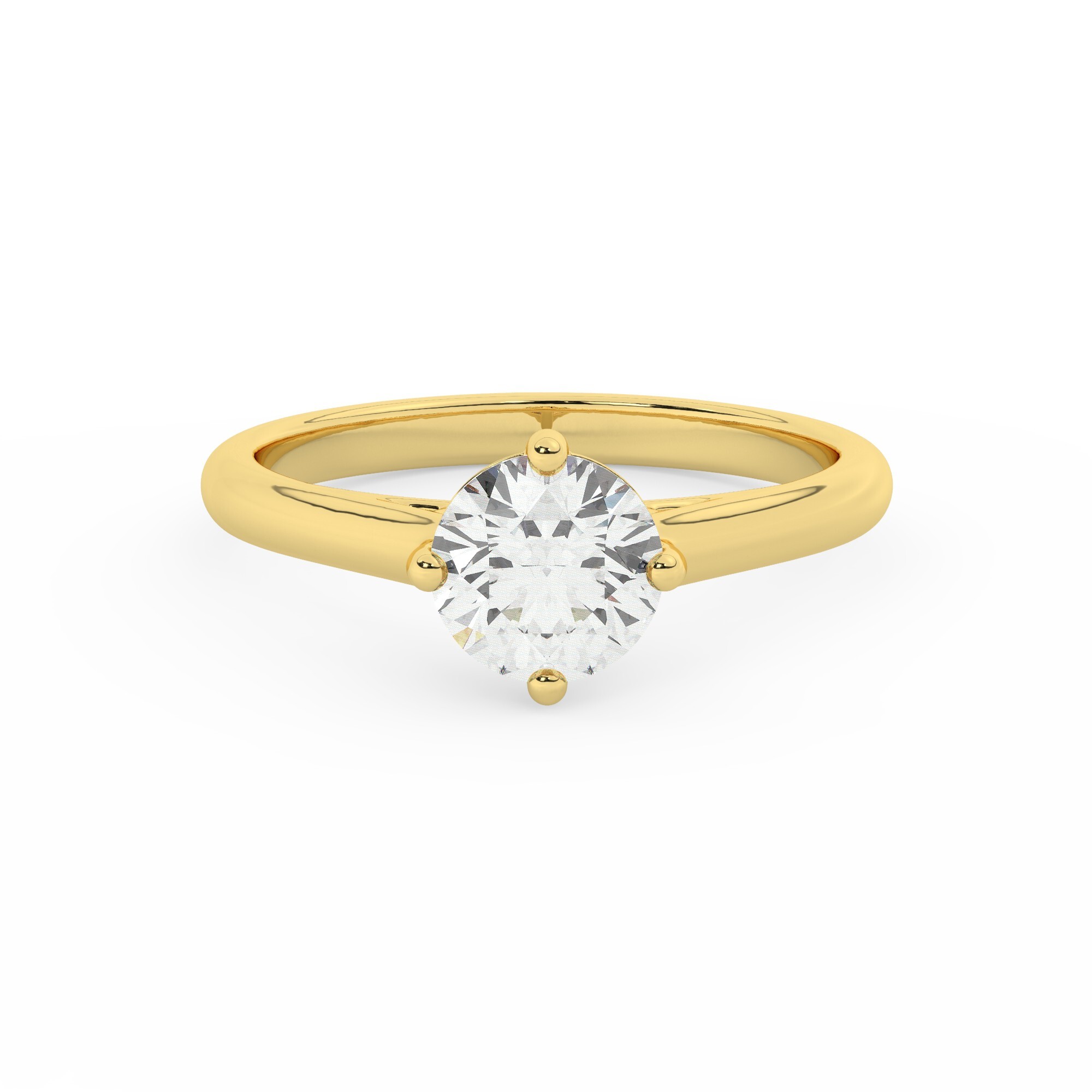 טבעת אירוסין סוליטר דגם 50029 כסף מצופה זהב צהוב במרכז יהלום מעבדה במשקל כולל של 0.75 קראט בחיתוך עגול עם תעודה גמולוגית