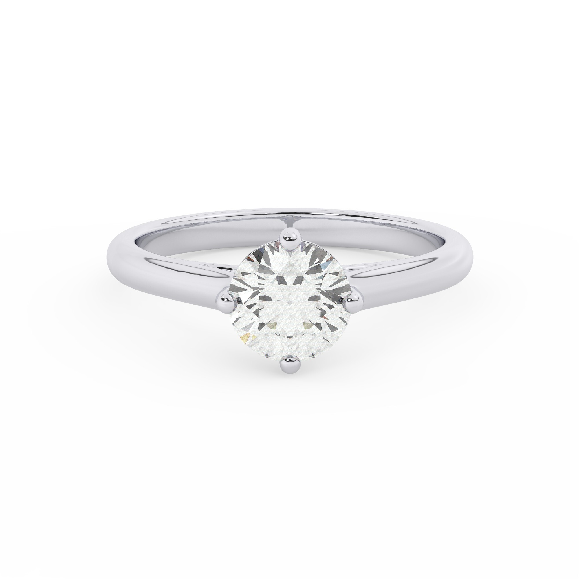 טבעת אירוסין סוליטר דגם 50029 כסף מצופה זהב לבן במרכז יהלום מעבדה במשקל כולל של 1 קראט בחיתוך עגול עם תעודה גמולוגית אירופאית IGI