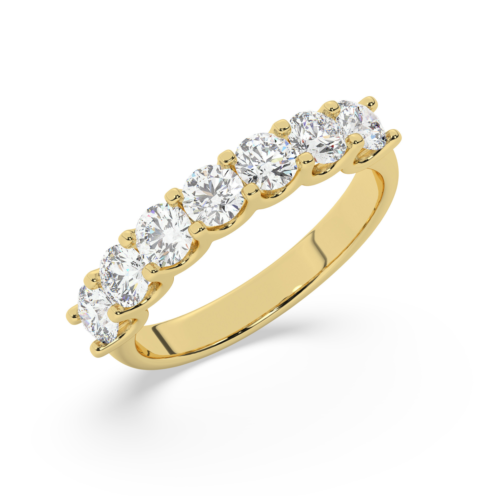 בטבעת משובצים 7 יהלומי מעבדה בחיתוך עגול במשקל כולל של 1.20 קרט עם תעודה גמולוגית.