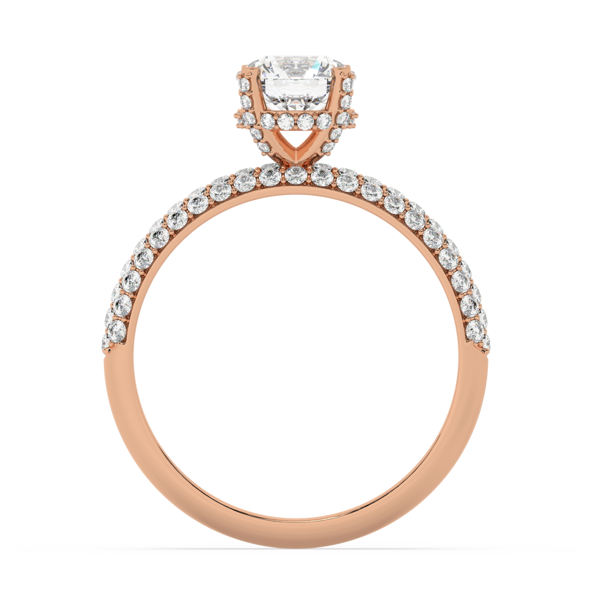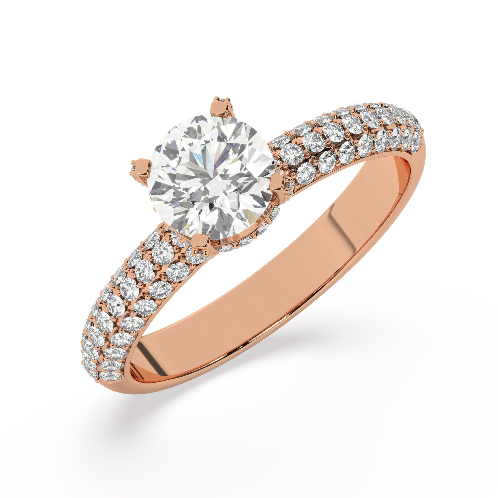 טבעת אירוסין סוליטר ויהלומים בצדדים דגם 50014 כסף מצופה זהב אדום רוזגולד במרכז יהלום מעבדה 1.50 קראט בחיתוך עגול עם תעודה גמולוגית אירופאית IGI מסביב ובצדדים יהלומי מעבדה במשקל כולל של 0.50 קראט בחיתוך עגול