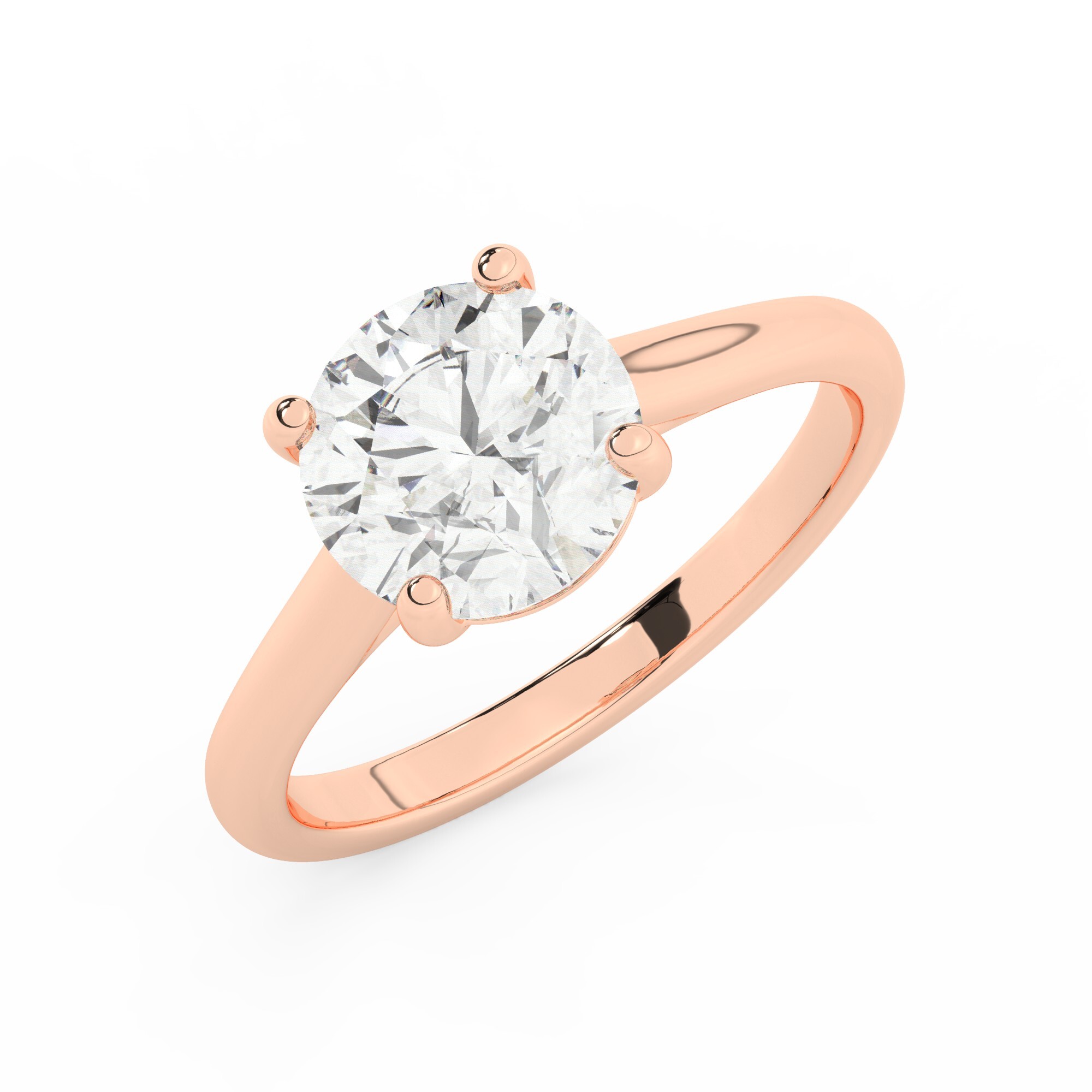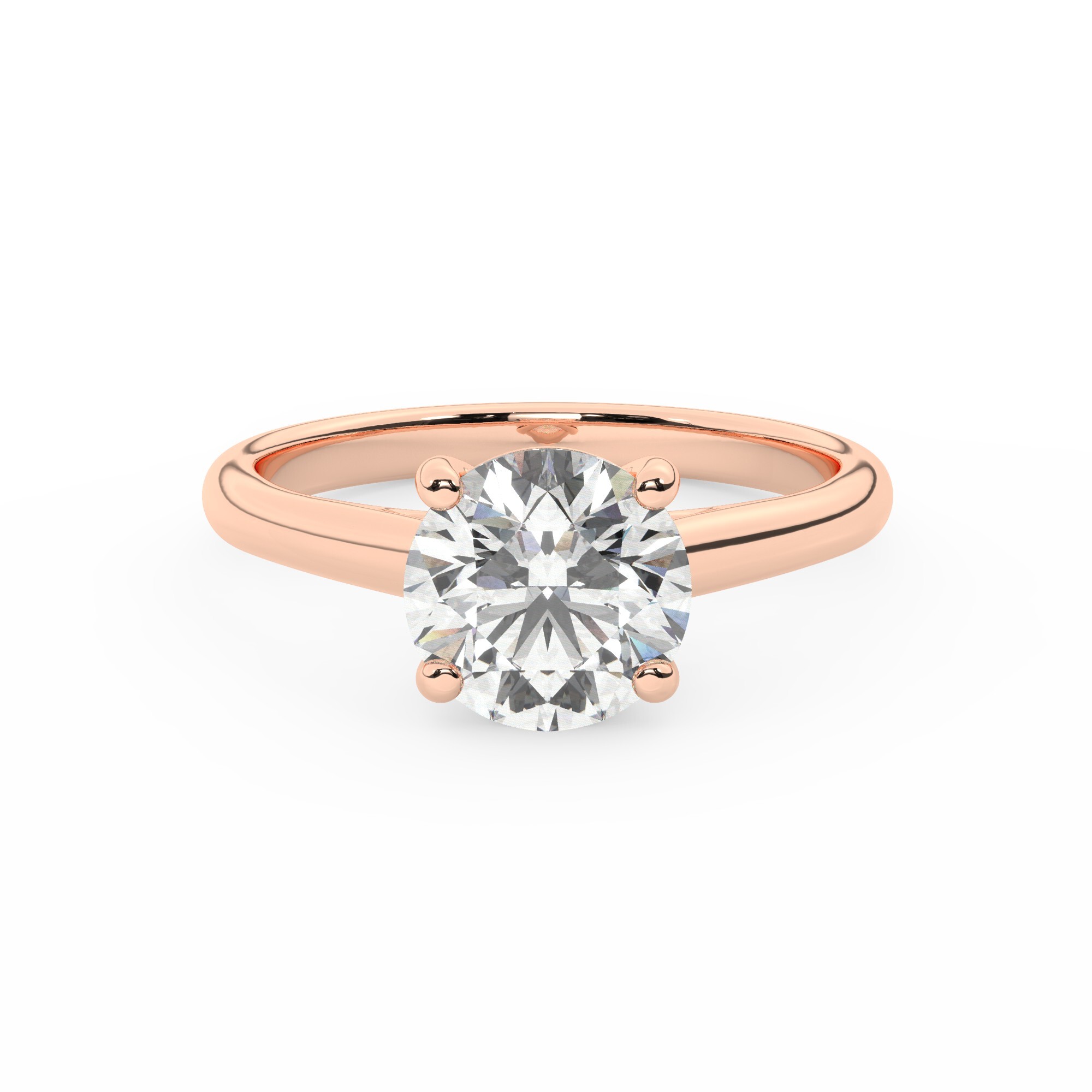טבעת אירוסין סוליטר דגם 50029 כסף מצופה זהב אדום רוזגולד במרכז יהלום מעבדה במשקל כולל של 2 קראט בחיתוך עגול עם תעודה גמולוגית אירופאית IGI
