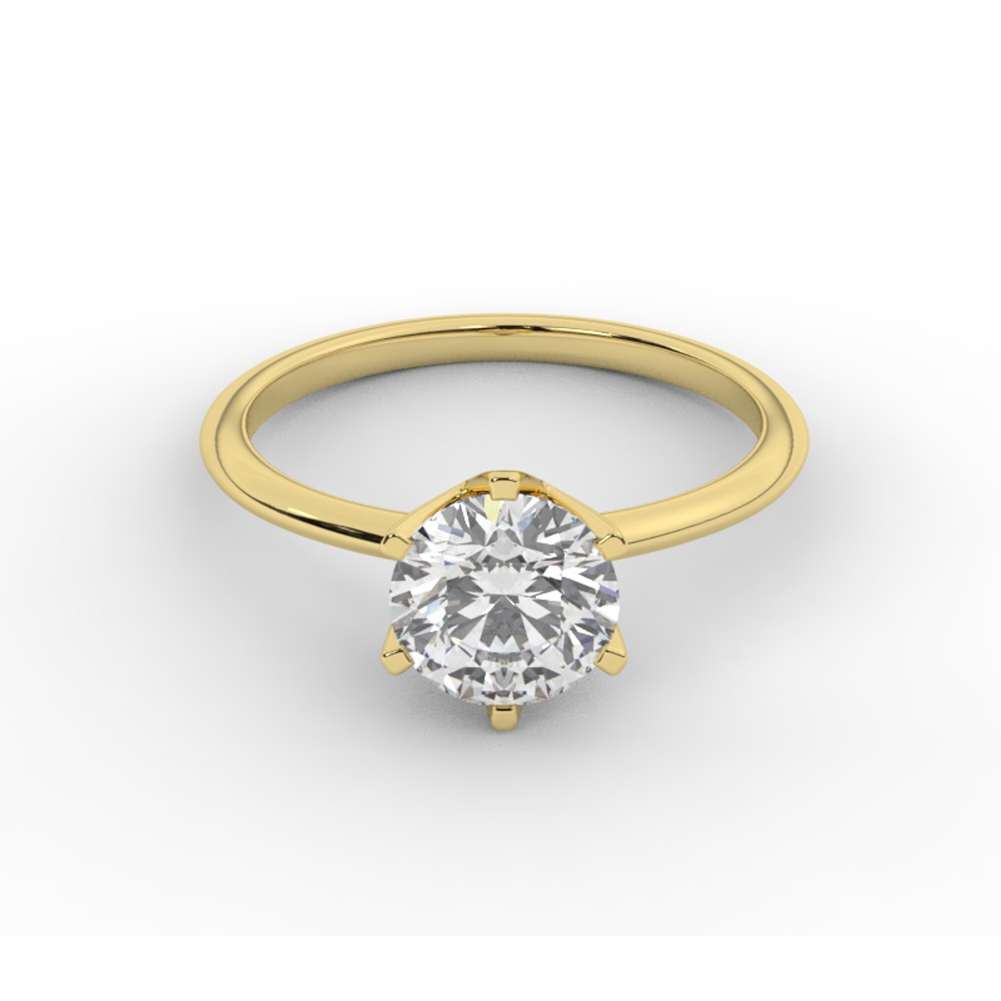 טבעת אירוסין סוליטר דגם 50023 כסף מצופה זהב צהוב במרכז יהלום מעבדה במשקל כולל של 2 קראט בחיתוך עגול עם תעודה גמולוגית אירופאית IGI