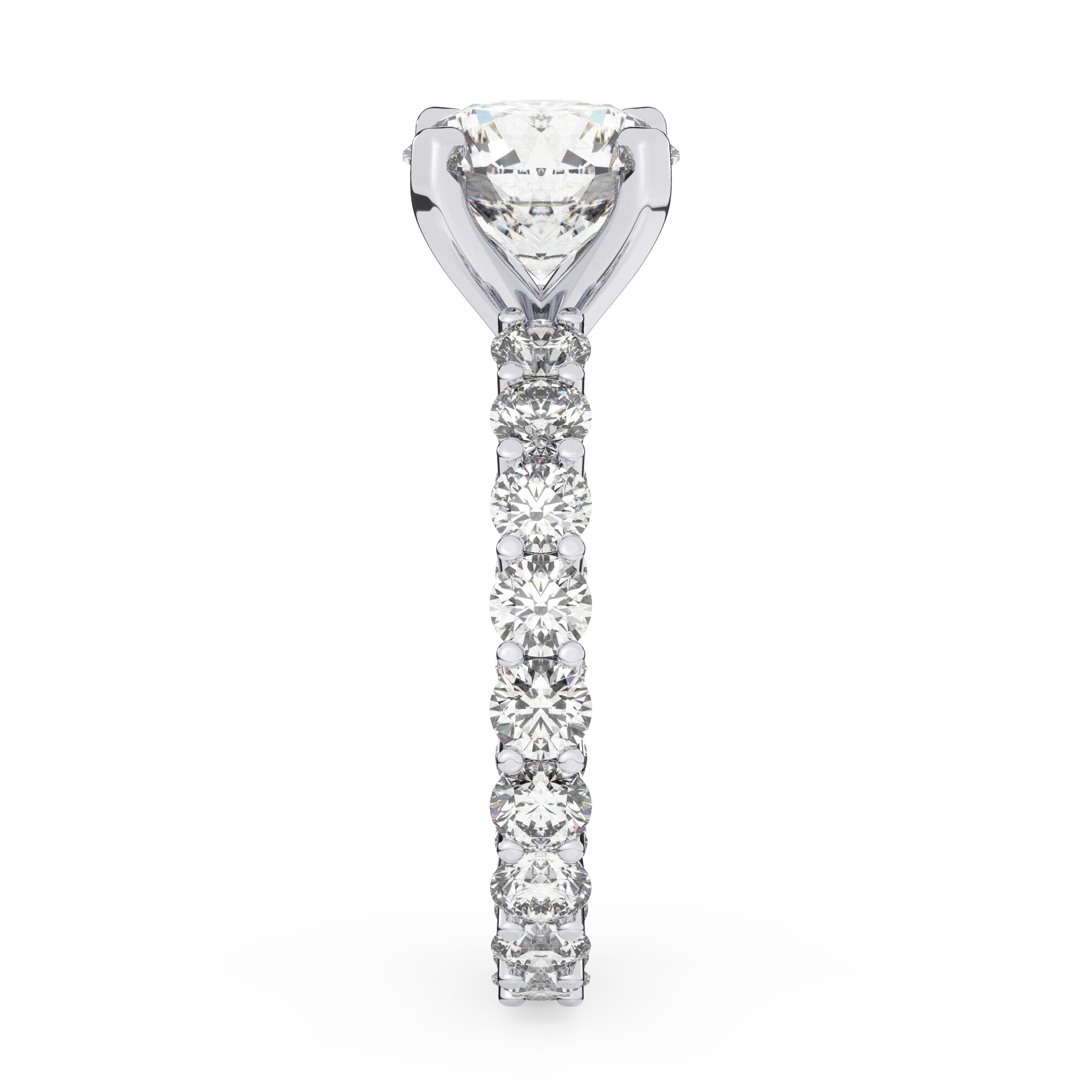 טבעת אירוסין סוליטר ויהלומים בצדדים איטרנטיני דגם 50044 כסף מצופה זהב לבן במרכז יהלום מעבדה 3 קראט בחיתוך עגול עם תעודה גמולוגית אירופאית IGI מסביב ובצדדים יהלומי מעבדה במשקל כולל של 1.80 קראט בחיתוך עגול