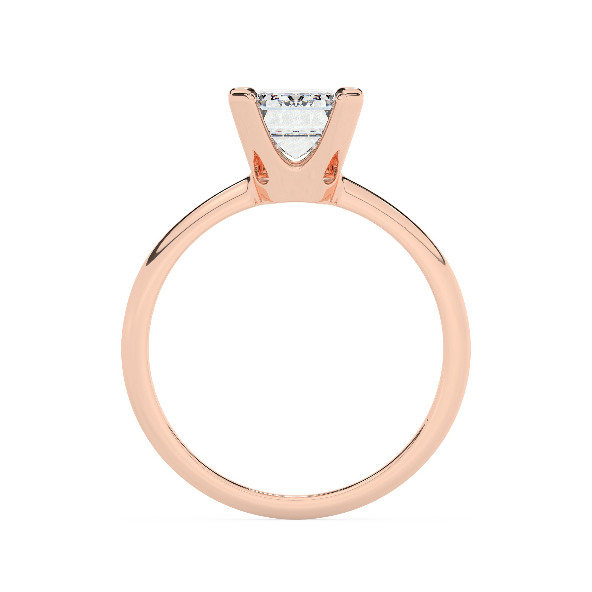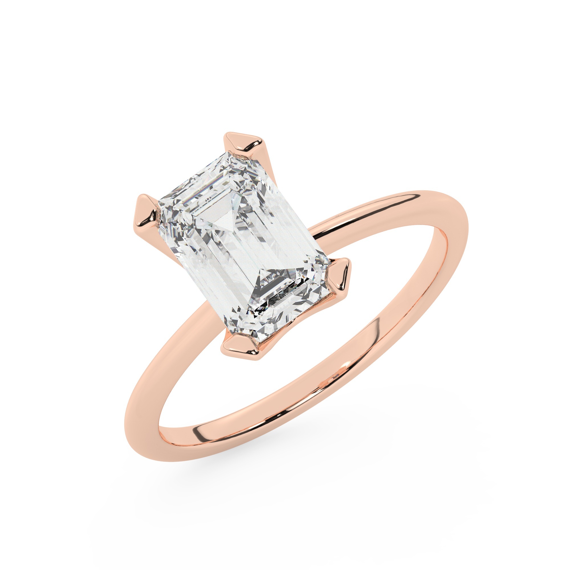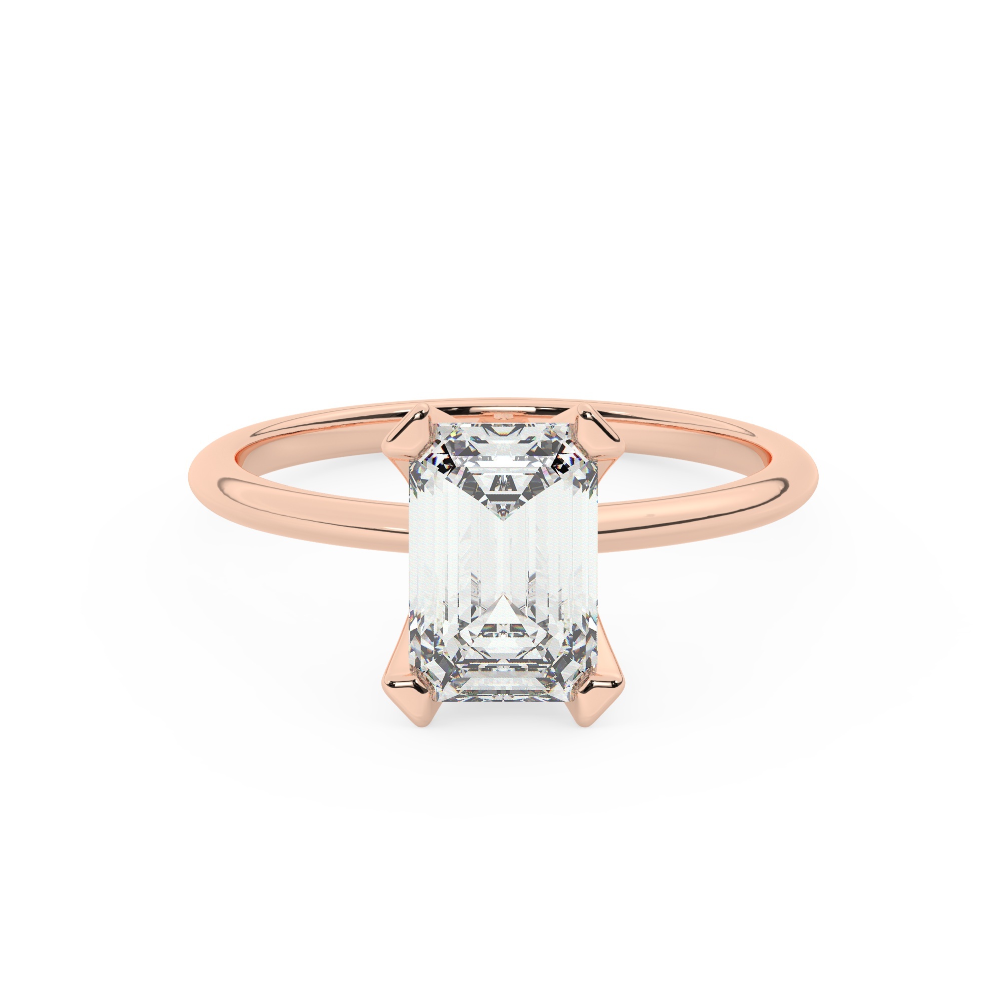טבעת אירוסין סוליטר דגם 50023 כסף מצופה זהב אדום רוזגולד במרכז אבן מעבדה מוסונייט במשקל כולל של 5 קראט בחיתוך אמרלד עם תעודה גמולוגית בינלאומית GRA