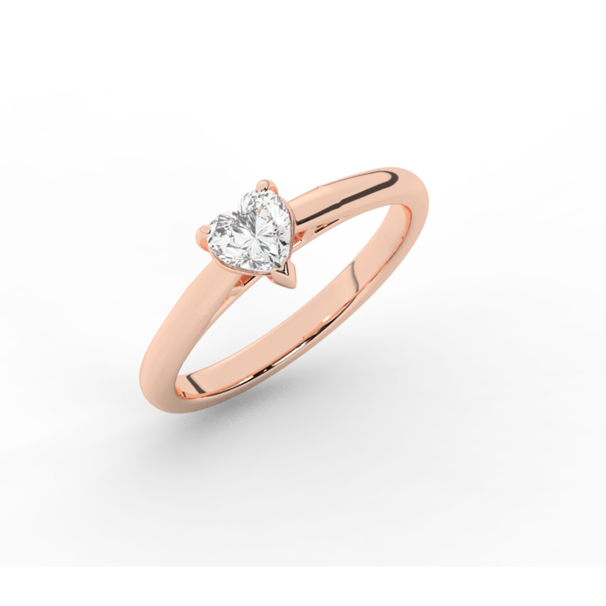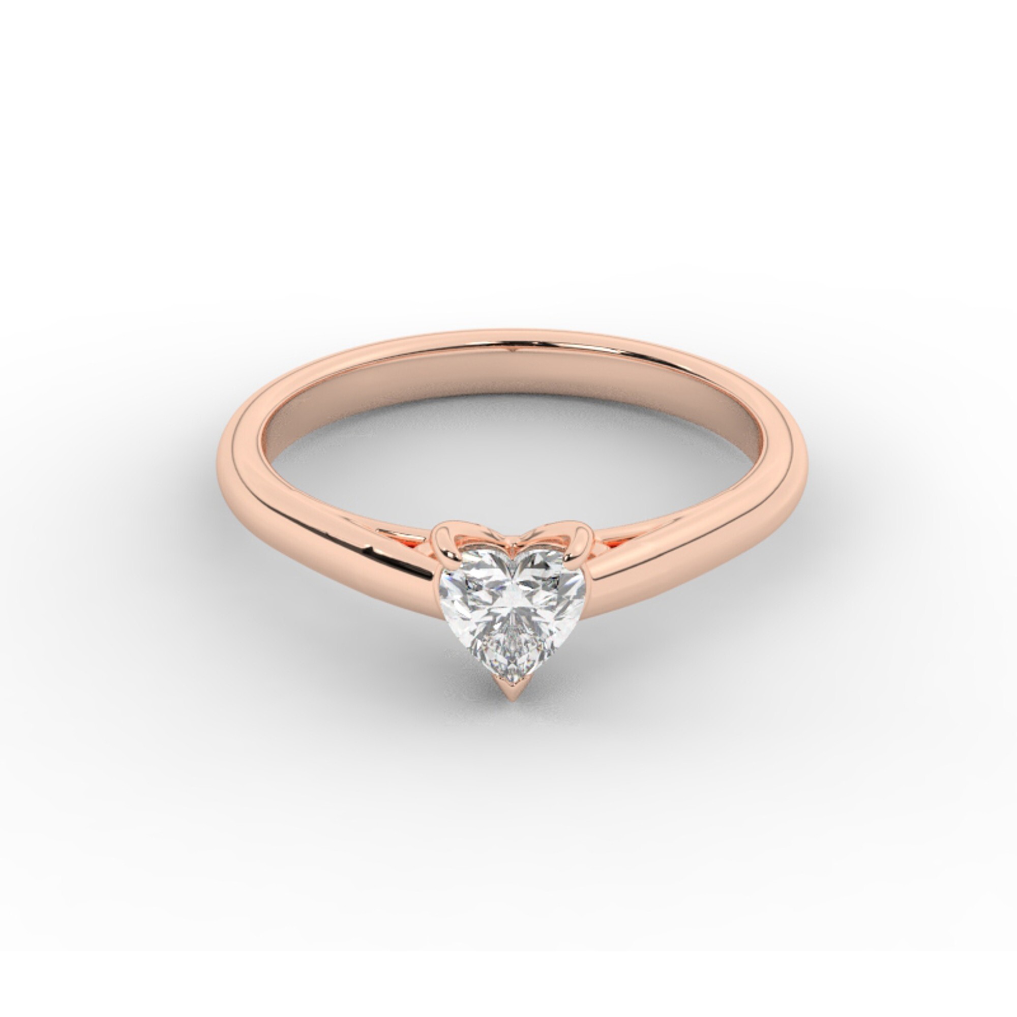 טבעת אירוסין סוליטר דגם 50029 זהב אדום רוזגולד 14 קראט במרכז אבן מעבדה מוסונייט במשקל כולל של 0.50 קראט בחיתוך לב עם תעודה גמולוגית