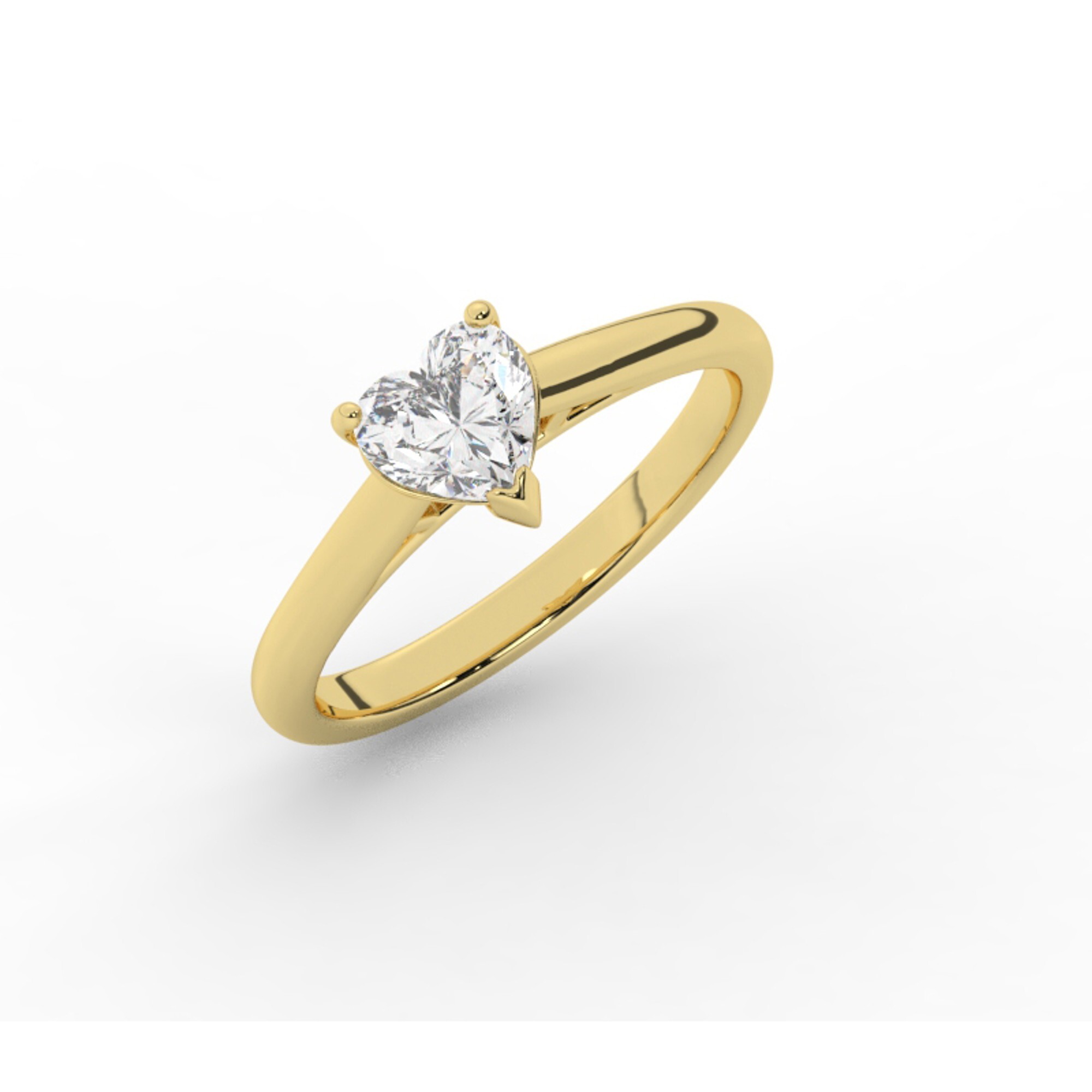 טבעת אירוסין סוליטר דגם 50029 זהב צהוב 14 קראט במרכז אבן מעבדה מוסונייט במשקל כולל של 0.75 קראט בחיתוך לב עם תעודה גמולוגית