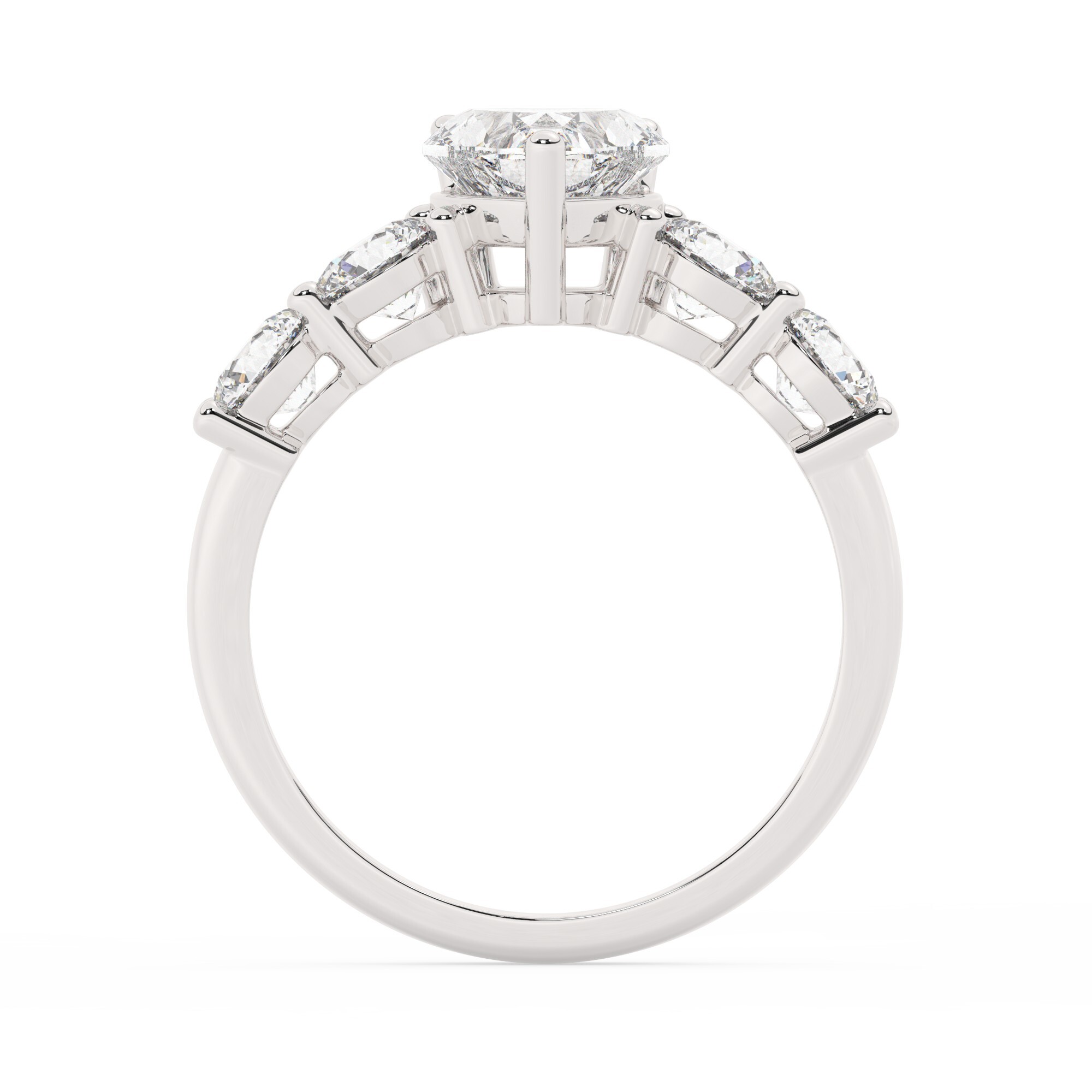 - סגנון: טבעת אירוסין סוליטר ויהלומים בצדדים אבני מעבדה מוסונייט