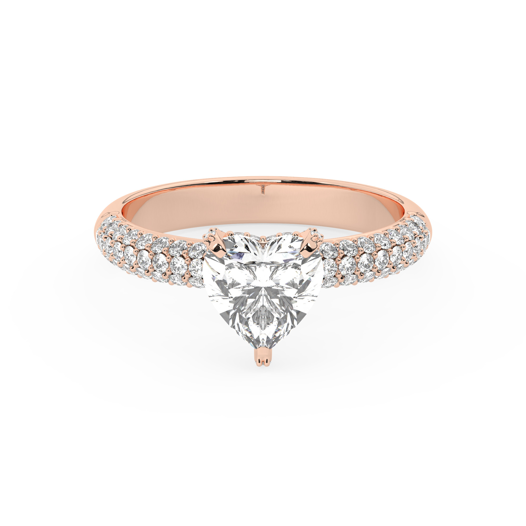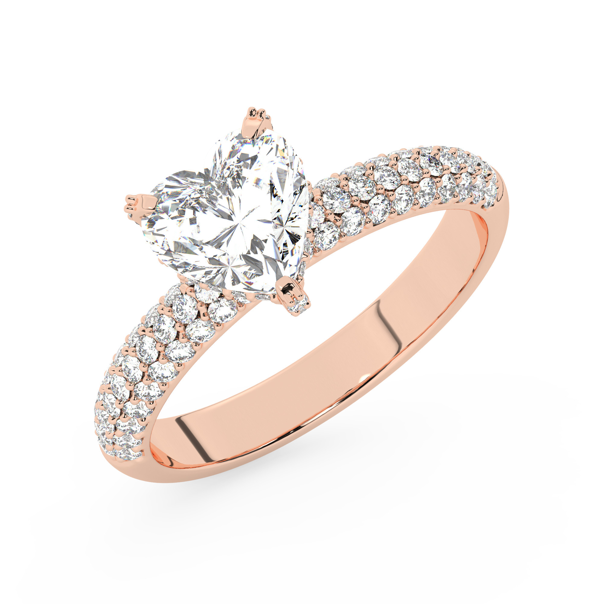 הטבעת עשויה כסף איכותי בציפוי זהב אדום (רוזגולד), גוון חמים אשר מדגיש את הצבע D הנדיר של אבן הלב. ניקיון האבן המרכזית VVS1 מדגיש את טוהר האבן, ומקנה לה ברק מושלם.