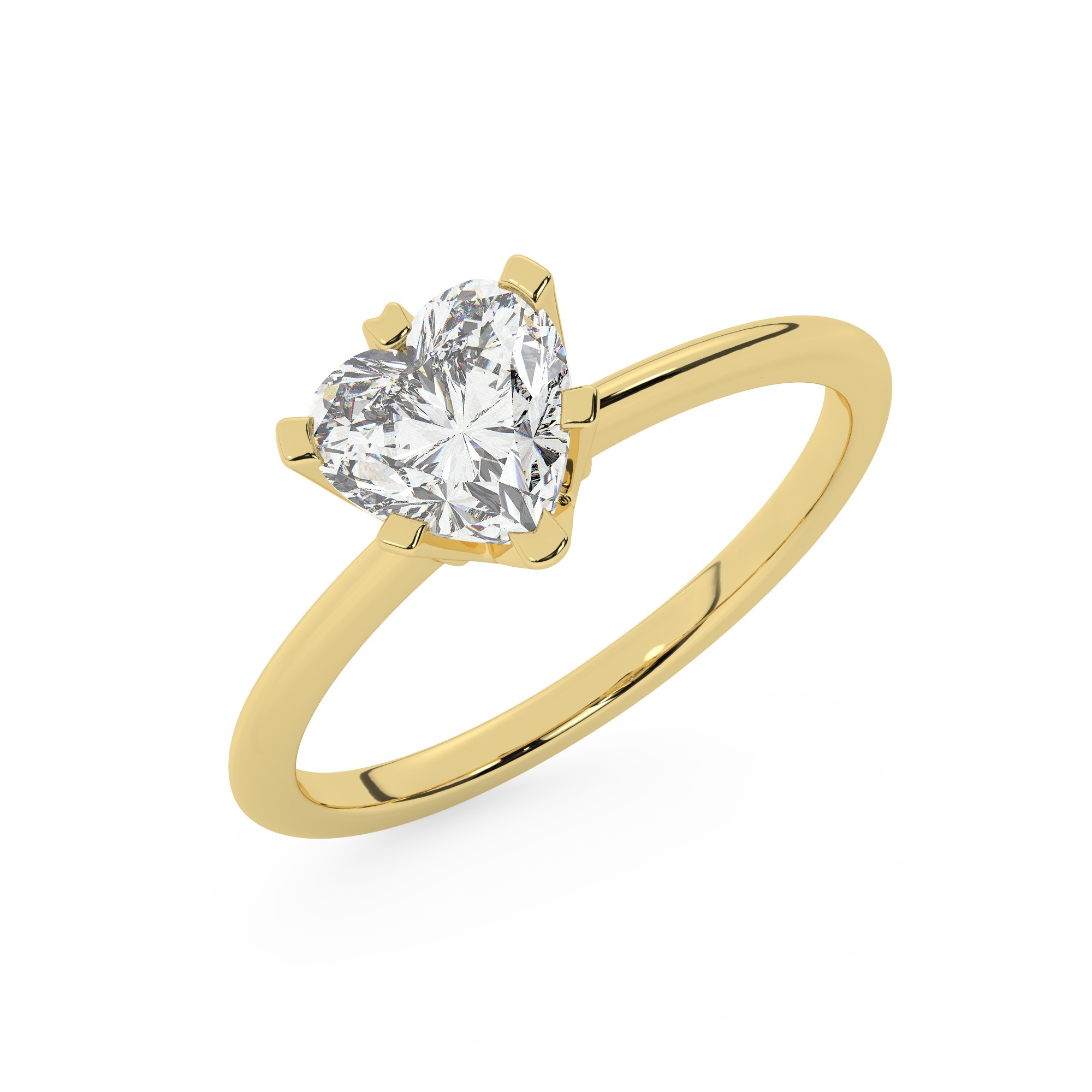 טבעת אירוסין סוליטר דגם 50023 כסף מצופה זהב צהוב במרכז אבן מעבדה מוסונייט במשקל כולל של 4 קראט בחיתוך לב עם תעודה גמולוגית בינלאומית GRA