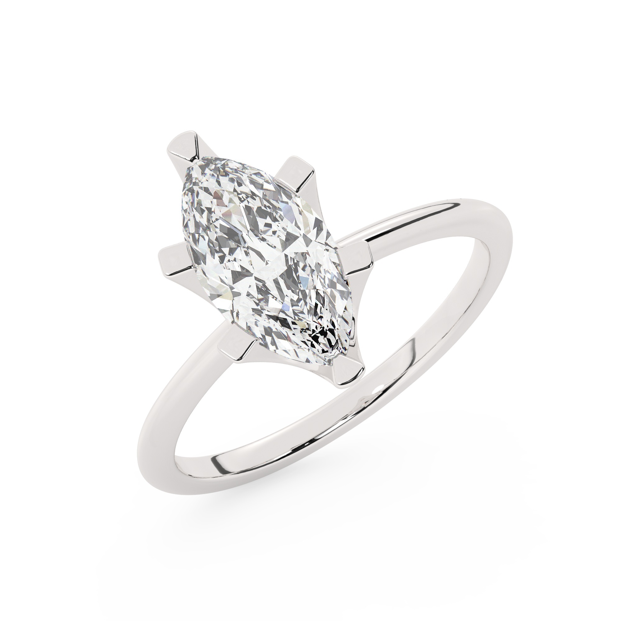 טבעת אירוסין סוליטר דגם 50023 כסף מצופה זהב לבן במרכז אבן מעבדה מוסונייט במשקל כולל של 5 קראט בחיתוך מרקיזה עם תעודה גמולוגית בינלאומית GRA