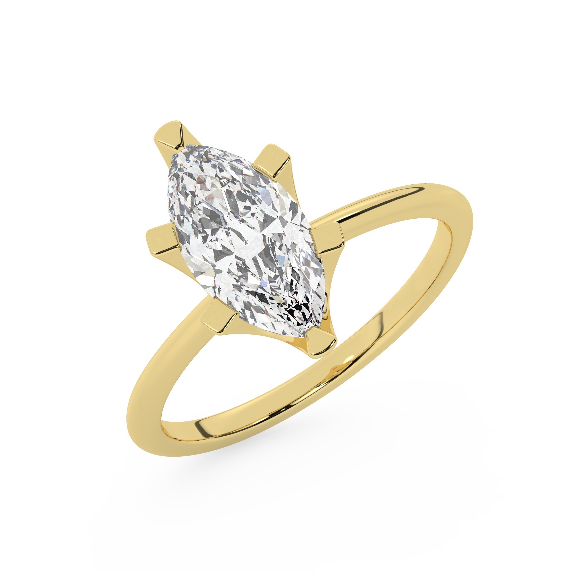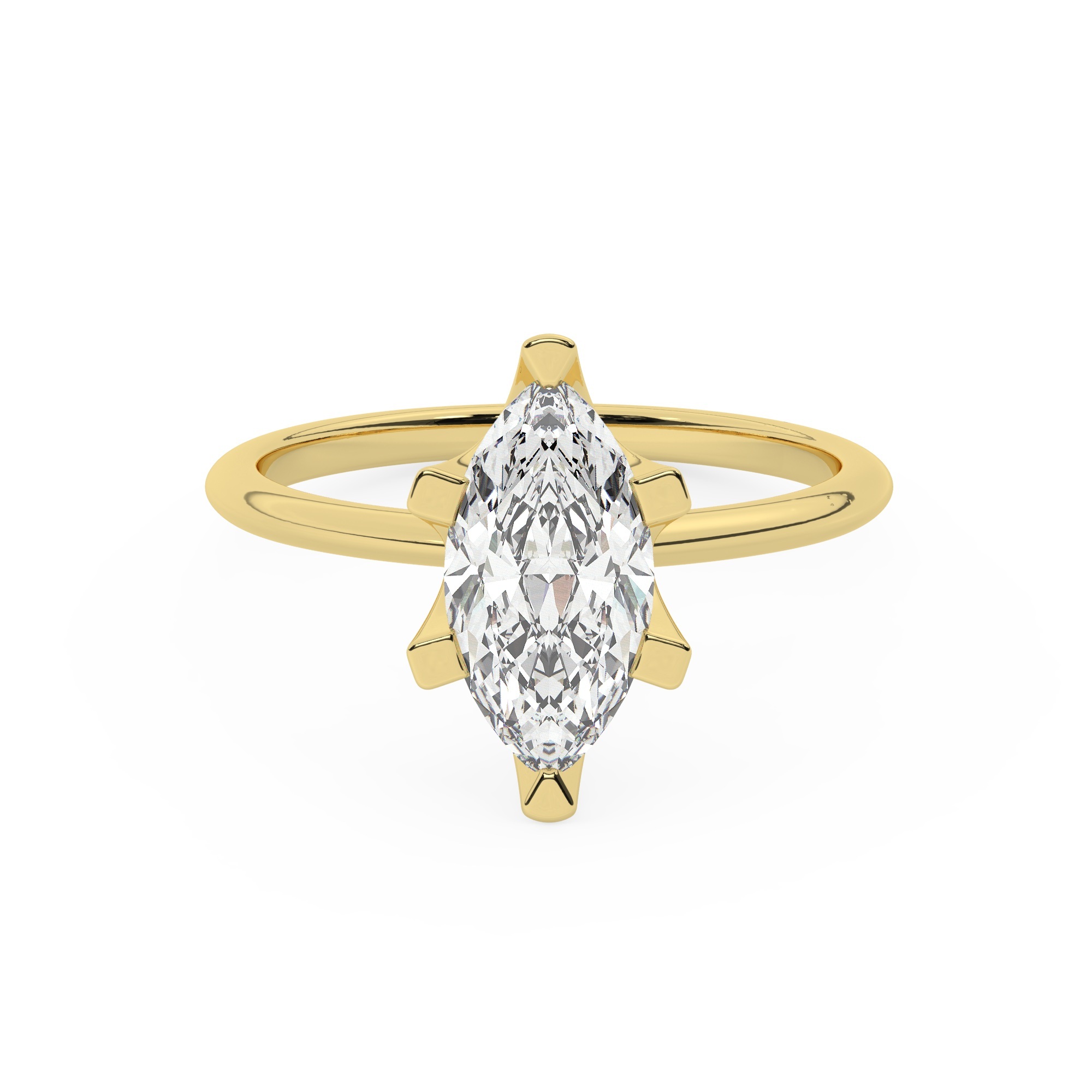 טבעת אירוסין סוליטר דגם 50023 כסף מצופה זהב צהוב במרכז אבן מעבדה מוסונייט במשקל כולל של 5 קראט בחיתוך מרקיזה עם תעודה גמולוגית בינלאומית GRA