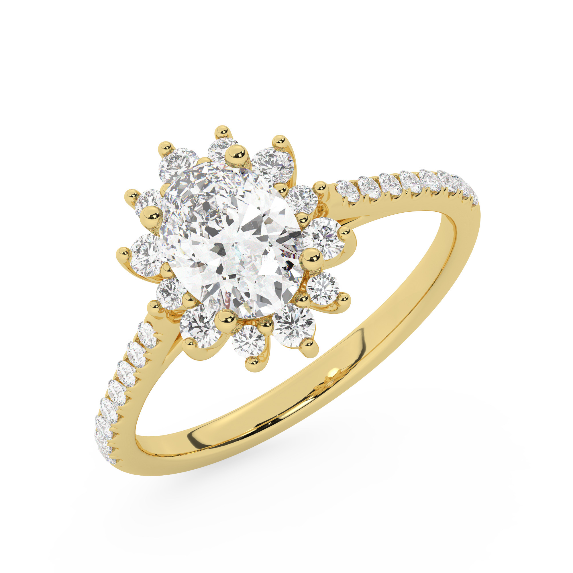50% הנחהטבעת אירוסין היילו דגם ליטל זהב צהוב 14 קראט במרכז יהלום מעבדה 1 קראט מסביבו ובצדדים שורה של יהלומים עם תעודה גמולוגית אירופאית IGI טבעת הצעת נישואין