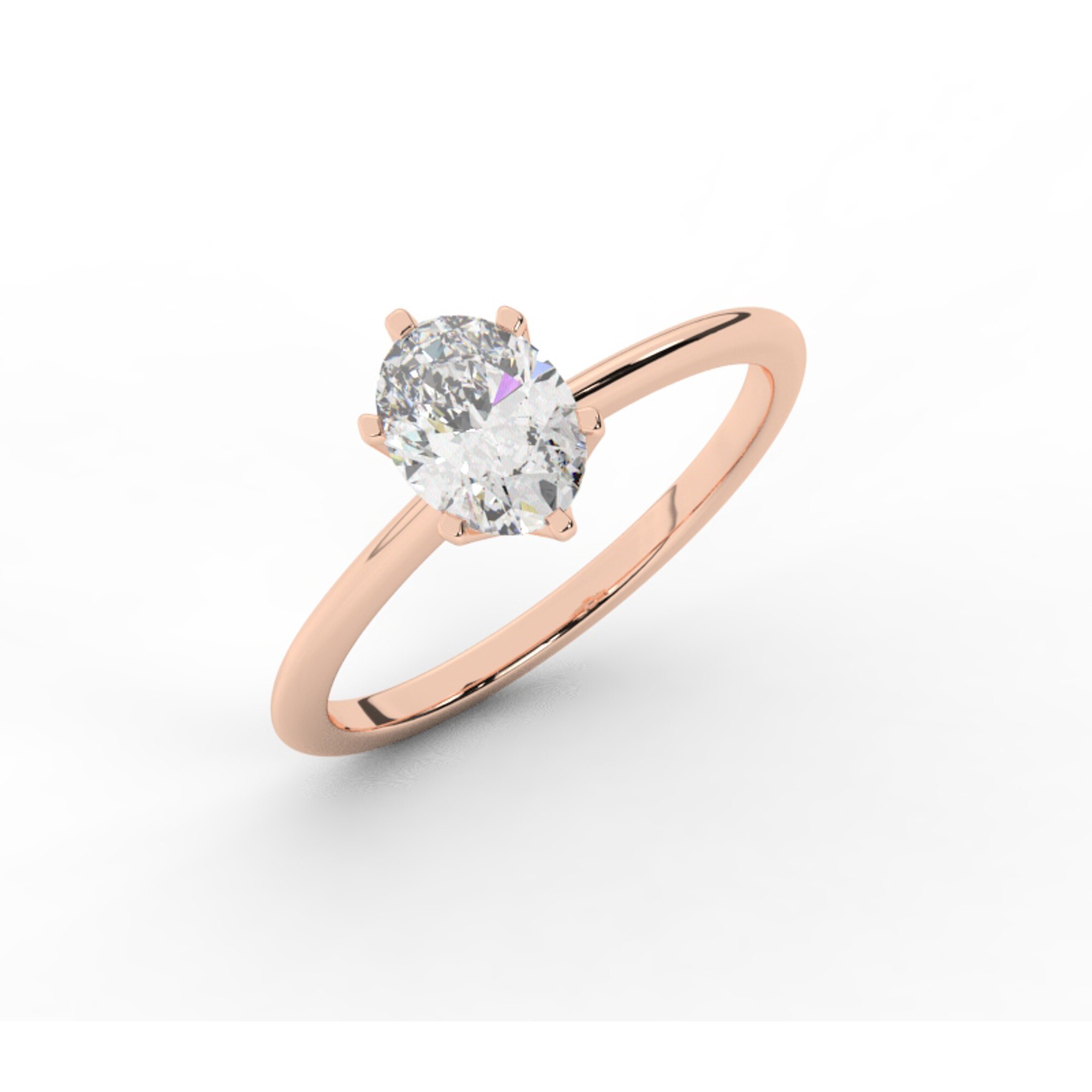 טבעת אירוסין סוליטר דגם 50023 זהב אדום רוזגולד 14 קראט במרכז אבן מעבדה מוסונייט במשקל כולל של 1.50 קראט בחיתוך אובל עם תעודה גמולוגית בינלאומית GRA