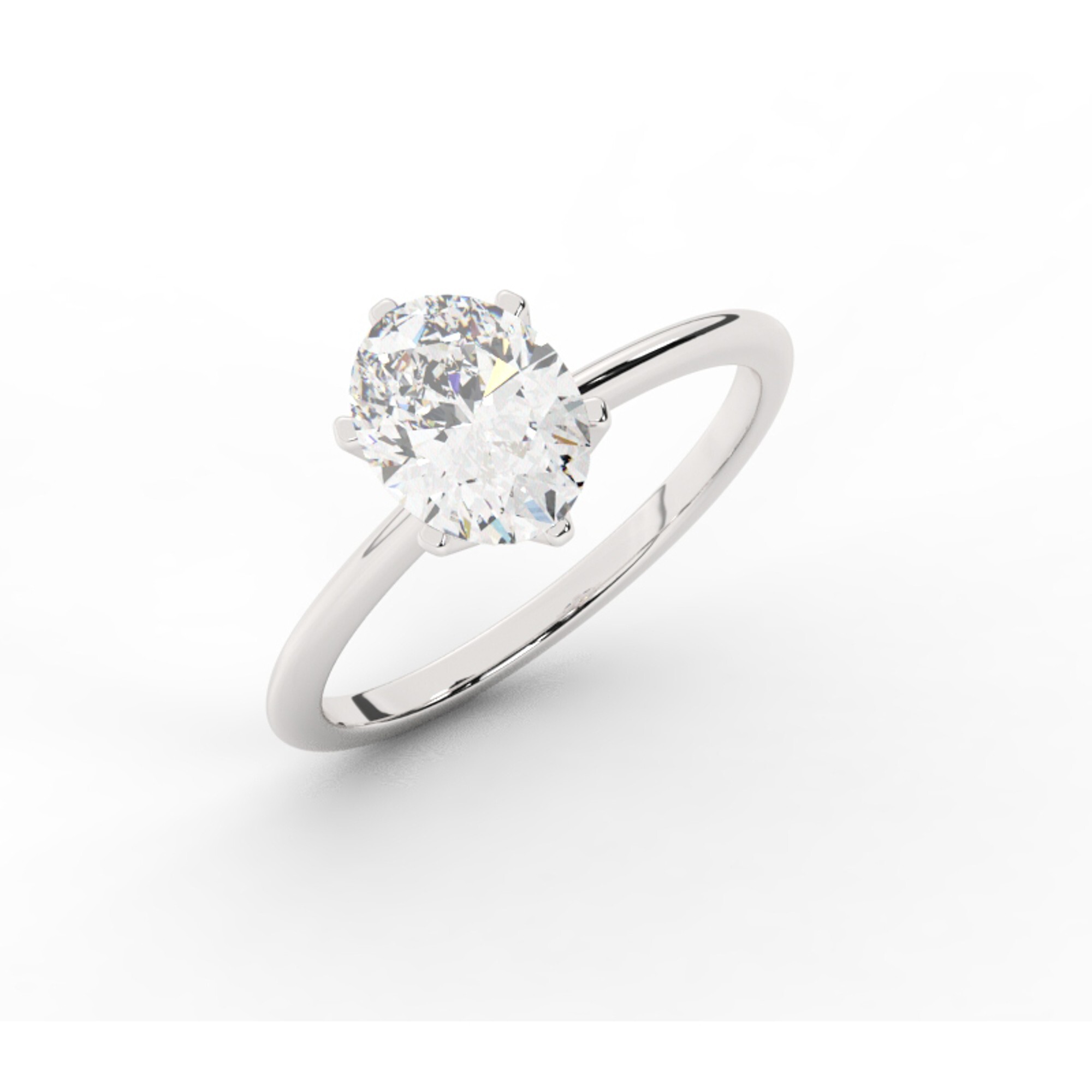 טבעת אירוסין סוליטר דגם 50023 זהב לבן 14 קראט במרכז אבן מעבדה מוסונייט במשקל כולל של 2.50 קראט בחיתוך אובל עם תעודה גמולוגית בינלאומית GRA