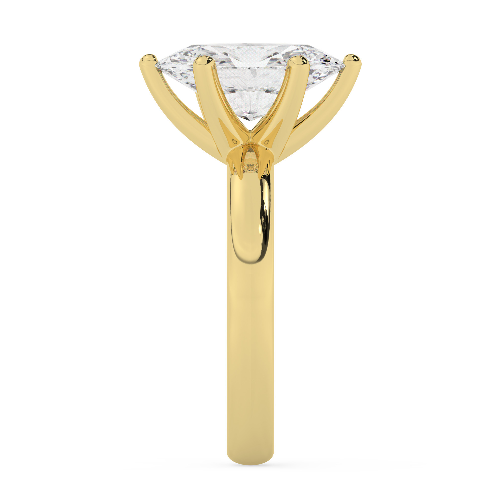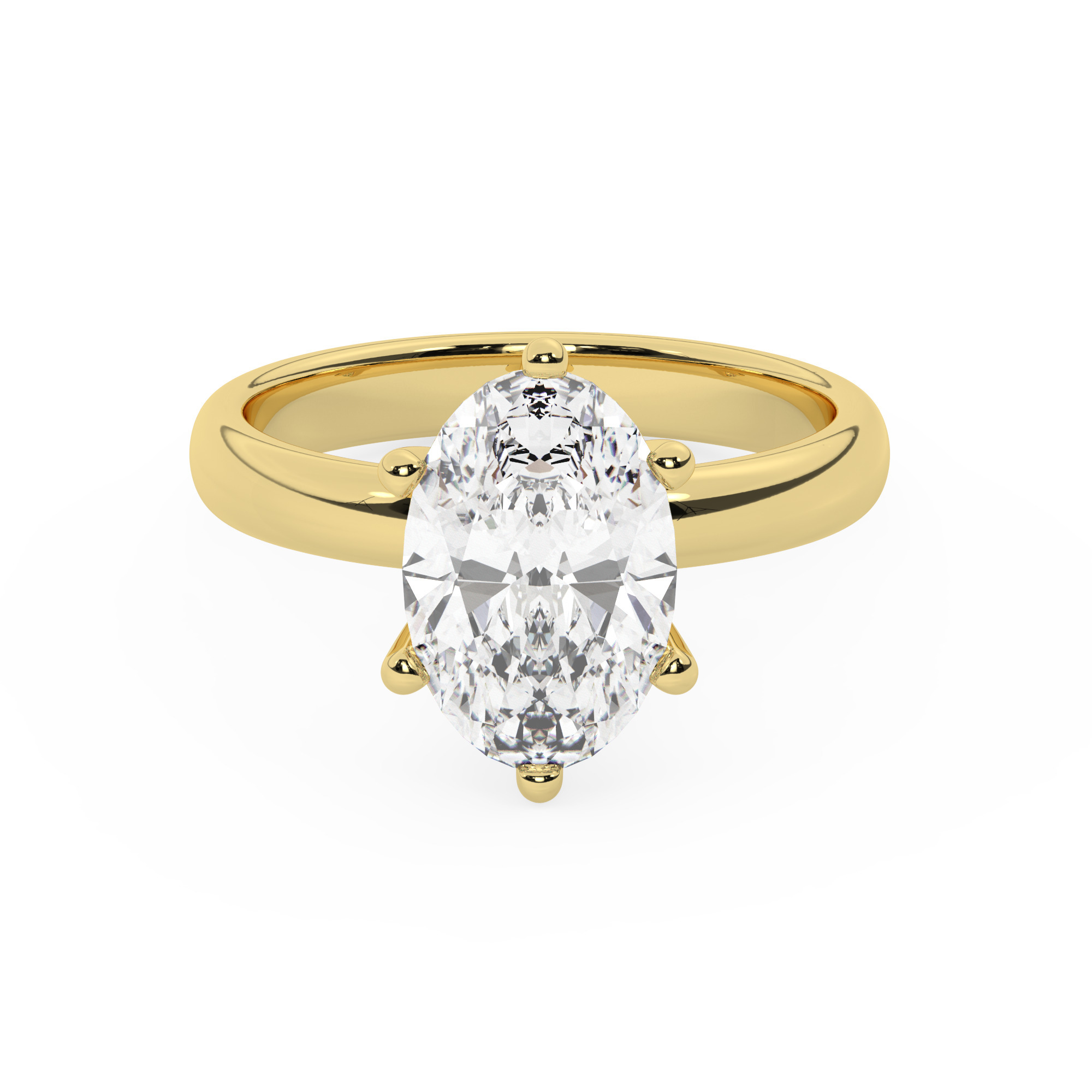 טבעת אירוסין סוליטר דגם 50047 זהב צהוב 14 קראט במרכז אבן מעבדה מוסונייט במשקל כולל של 4 קראט בחיתוך אובל עם תעודה גמולוגית בינלאומית GRA
