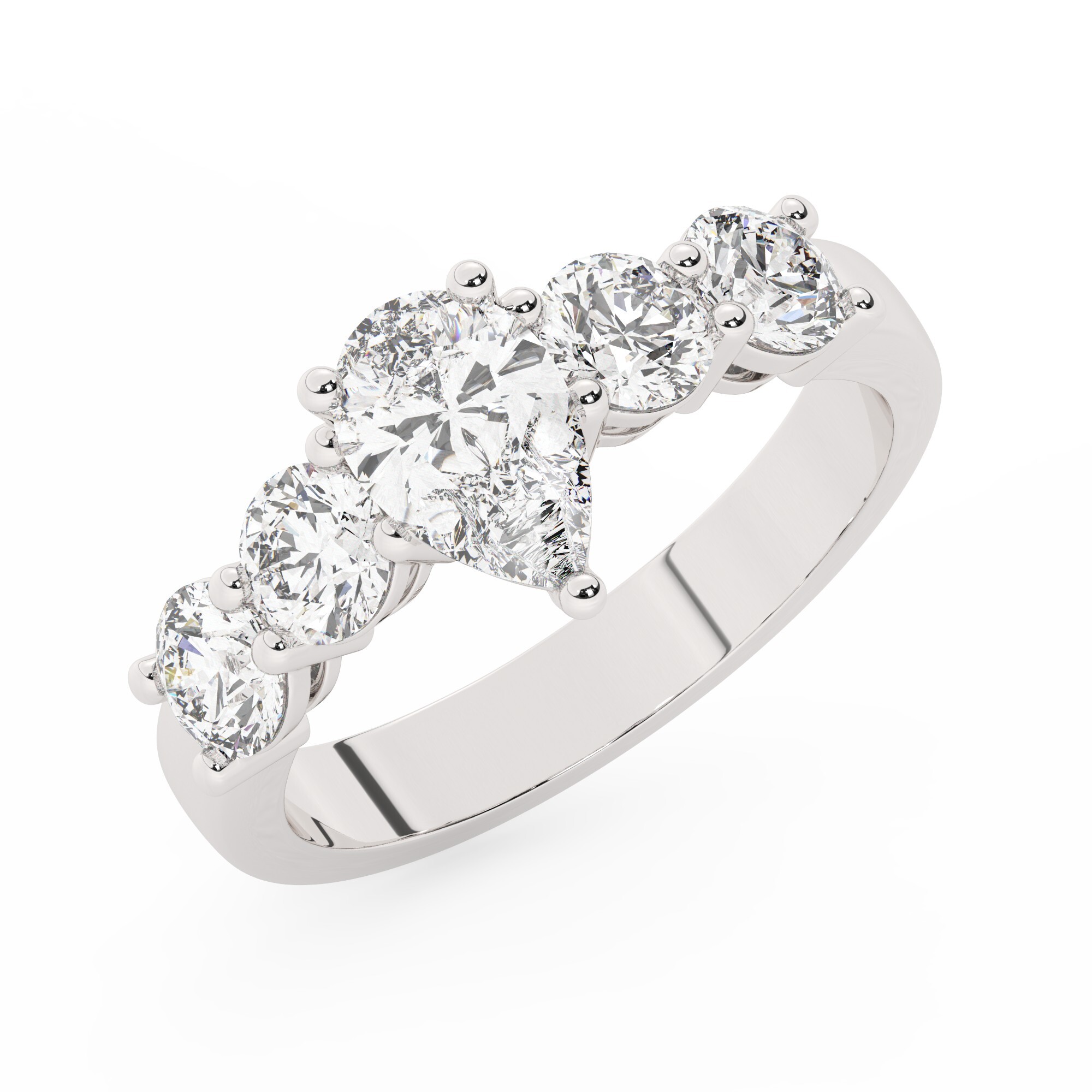 טבעת האירוסין המרהיבה הזו, שבה נתפסים כל המאפיינים של יוקרה ואלגנטיות, היא הבחירה האידיאלית להציע לאהובתכם את הצעת הנישואין שלה. : עם טבעת אבני מעבדה מוסונייט ועם כמות מרהיבה של 5 אבנים המשתלבות בצורה מושלמת, כל פרט בעיצוב הזה נאמן לערכים של איכות וצרכנות נבונה. טבעת זו עשויה 14 קראט זהב לבן, אשר מוסיף לה גימור נוצץ, כמו התשוקה שלכם לדמות את החיים המשותפים שלכם.