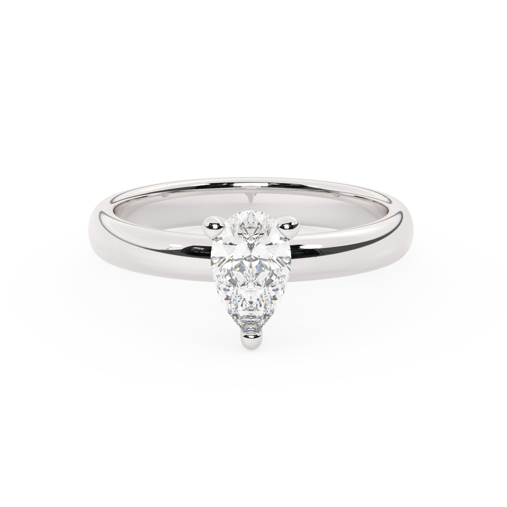 טבעת אירוסין סוליטר דגם 50047 זהב לבן 14 קראט במרכז אבן מעבדה מוסונייט במשקל כולל של 2 קראט בחיתוך טיפה עם תעודה גמולוגית בינלאומית GRA