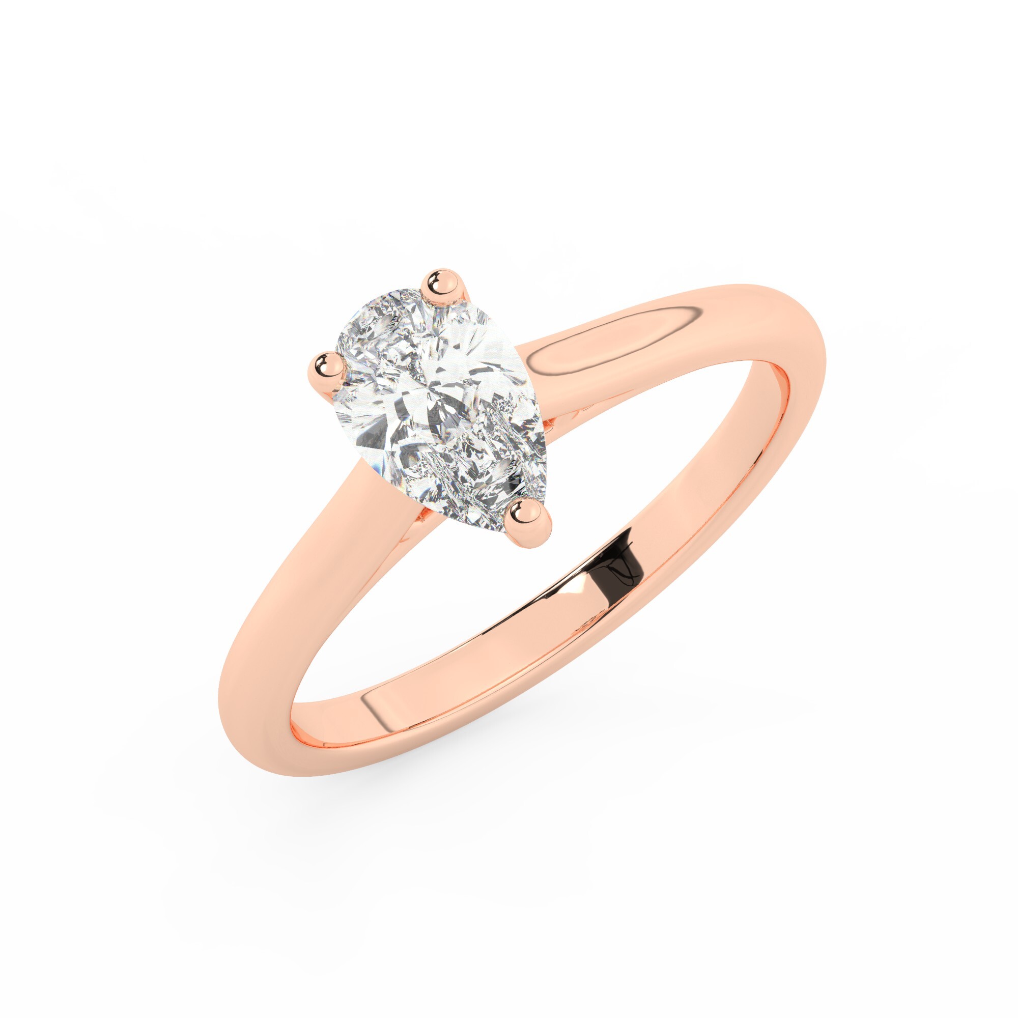 טבעת אירוסין סוליטר דגם 50029 כסף מצופה זהב אדום רוזגולד במרכז אבן מעבדה מוסונייט במשקל כולל של 2.50 קראט בחיתוך טיפה עם תעודה גמולוגית בינלאומית GRA