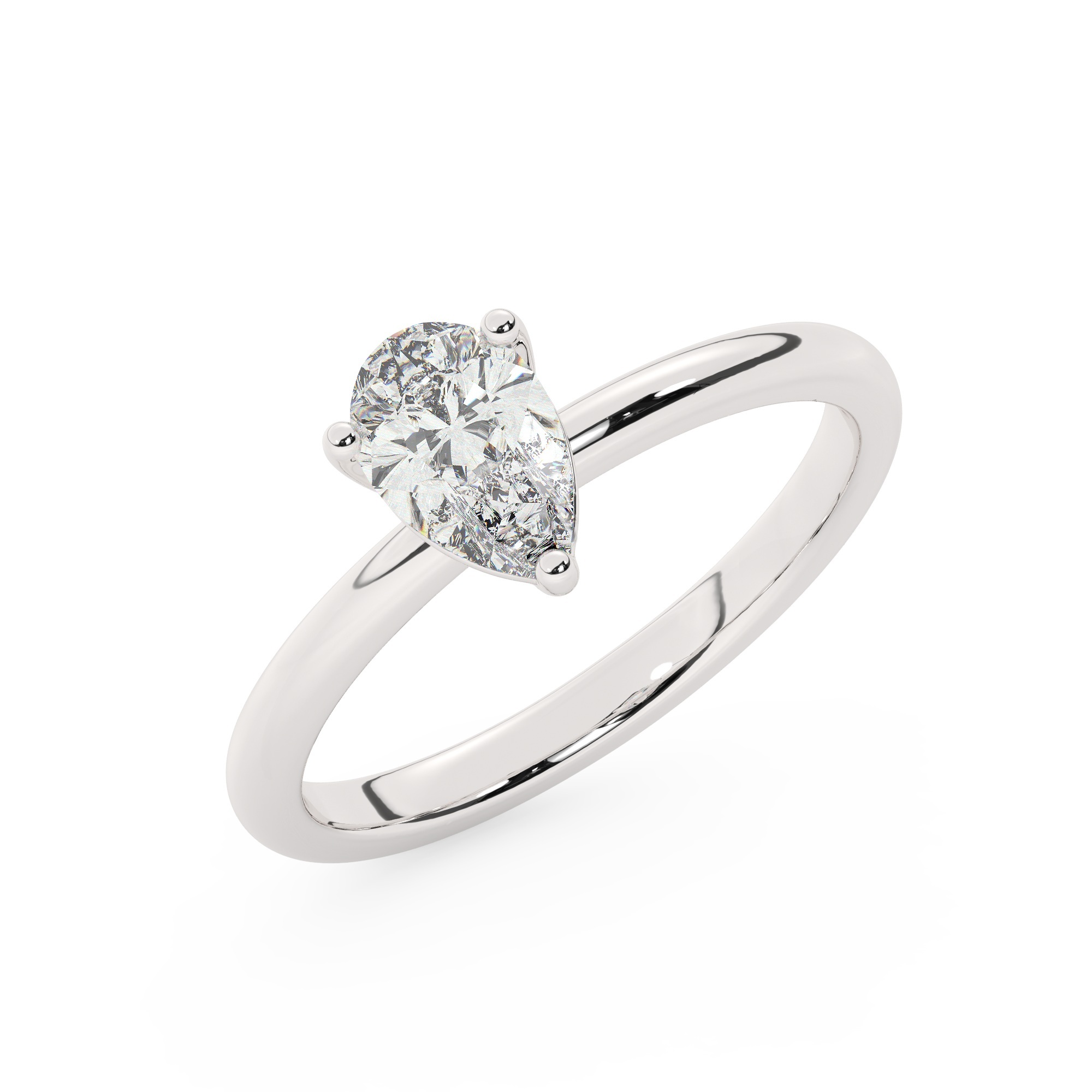 טבעת אירוסין סוליטר דגם 50016 זהב לבן 14 קראט במרכז אבן מעבדה מוסונייט במשקל כולל של 5 קראט בחיתוך טיפה עם תעודה גמולוגית בינלאומית GRA