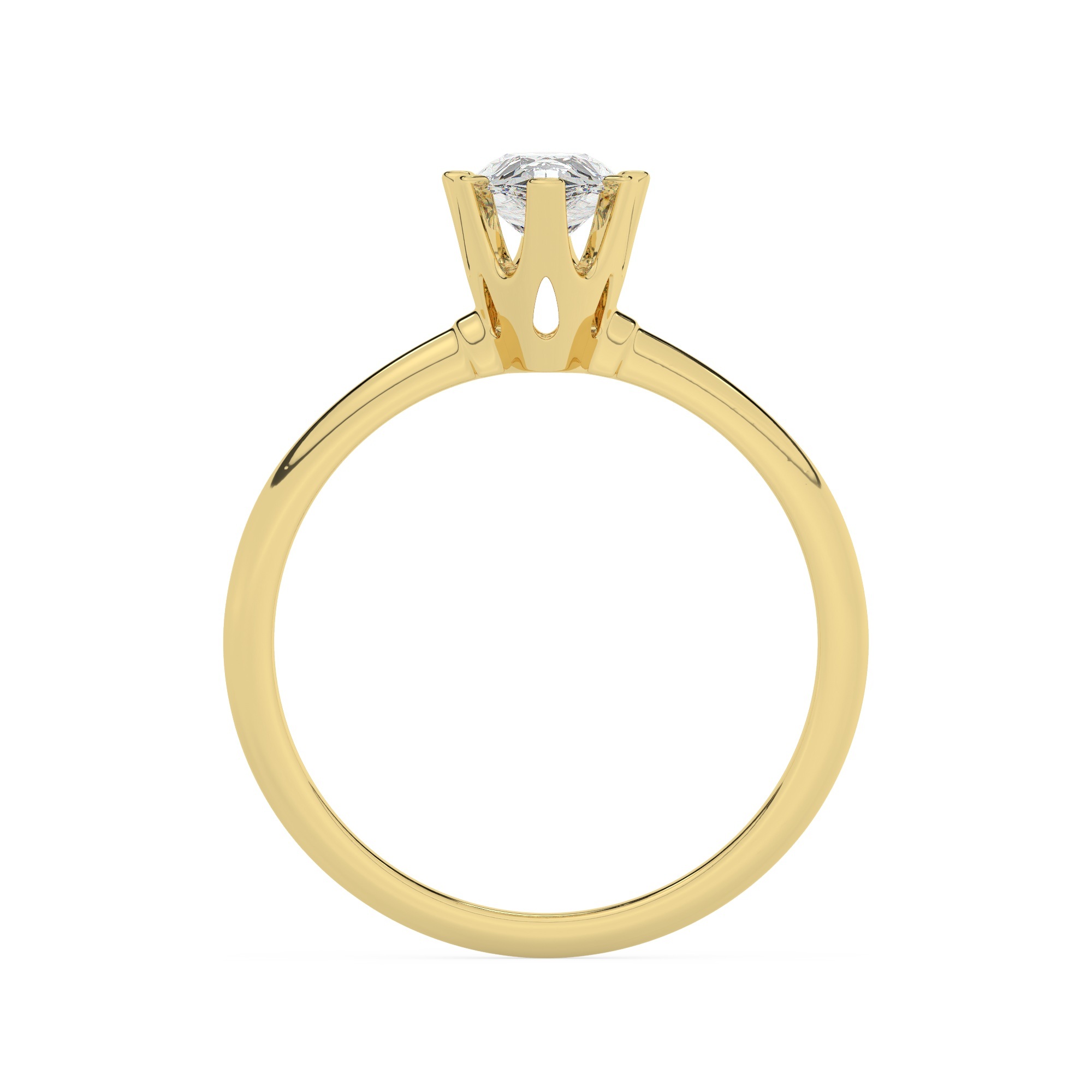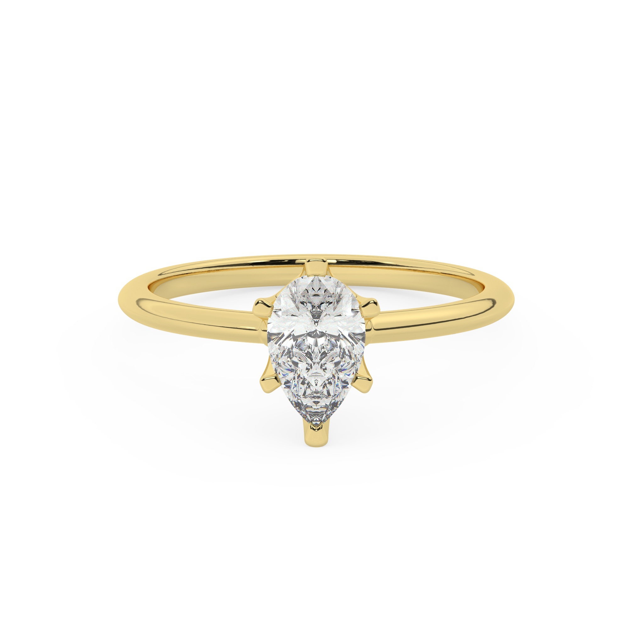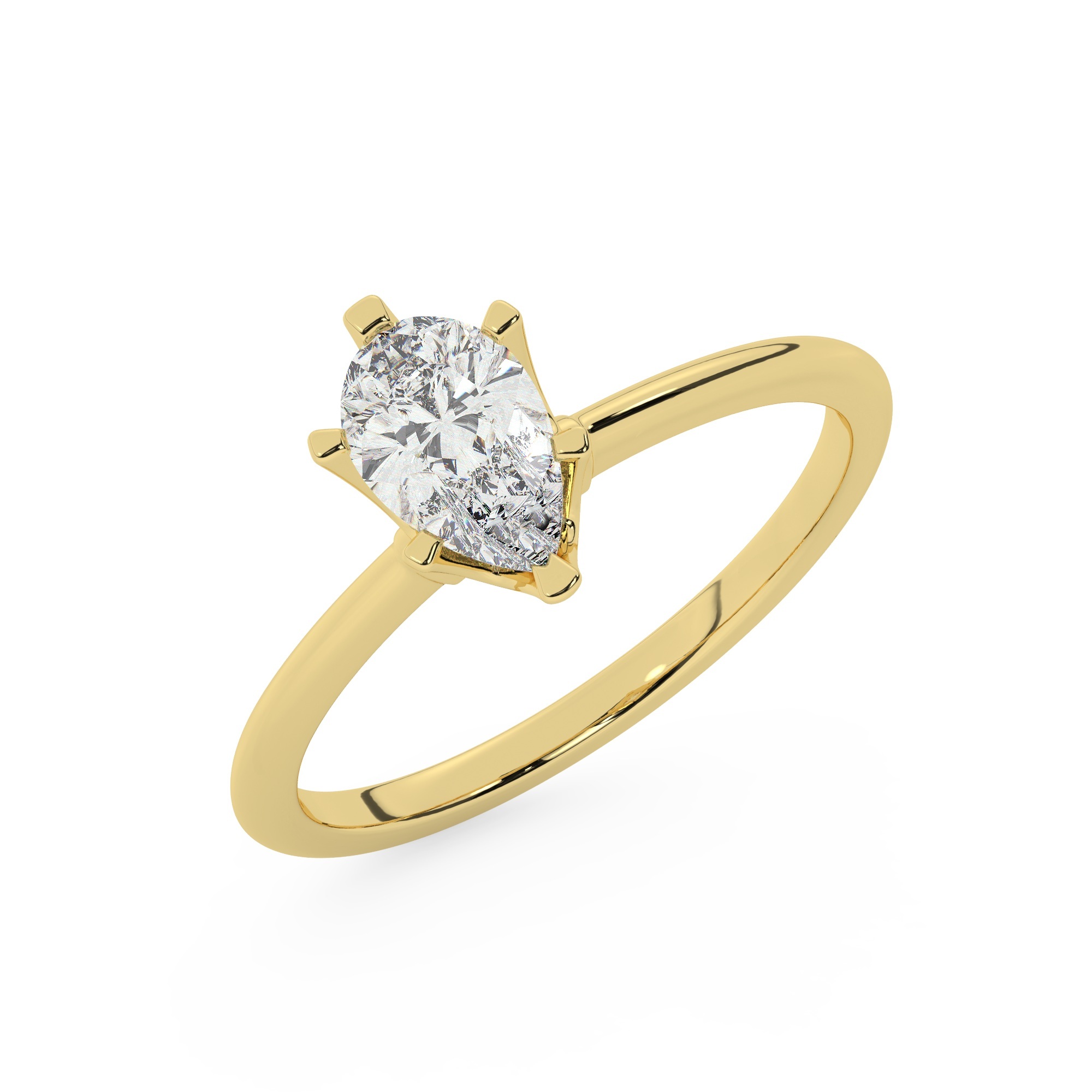 טבעת אירוסין סוליטר דגם 50023 כסף מצופה זהב צהוב במרכז אבן מעבדה מוסונייט במשקל כולל של 5 קראט בחיתוך טיפה עם תעודה גמולוגית בינלאומית GRA